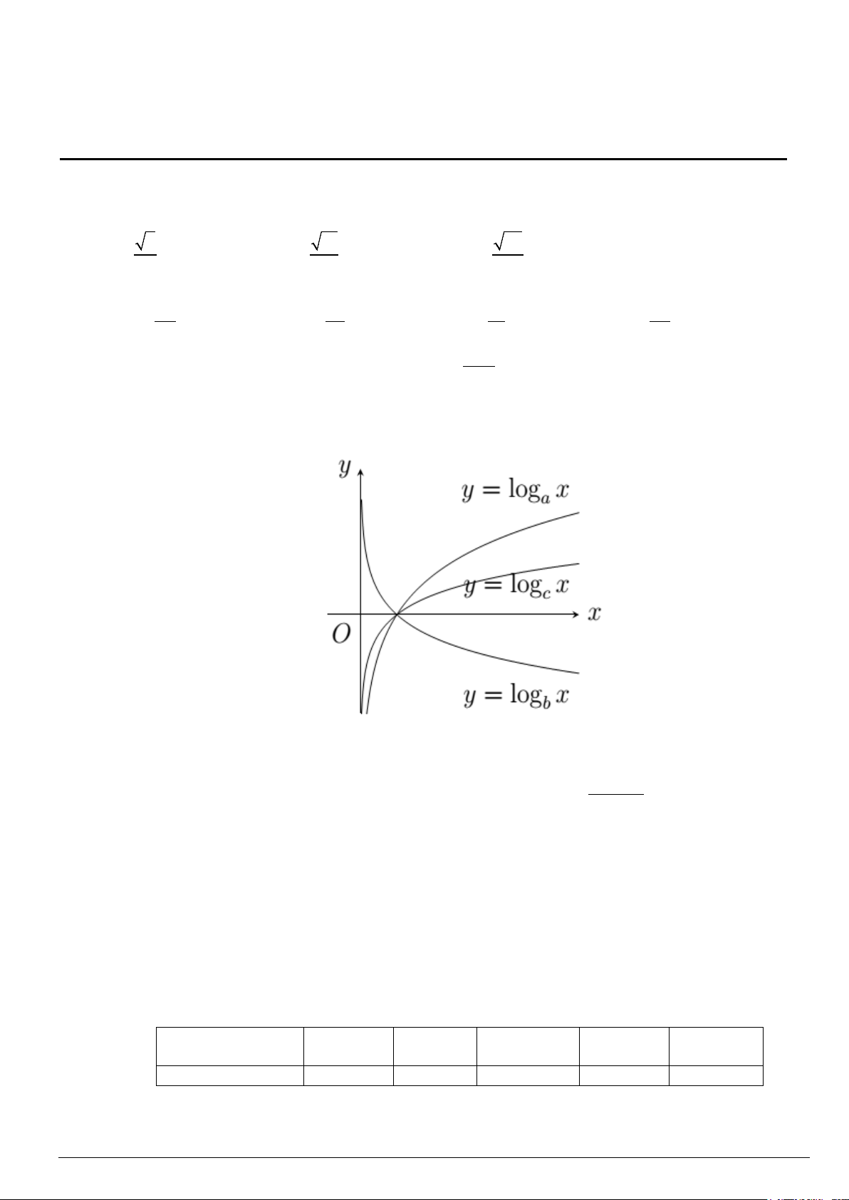 x có đồ thị như hình vẽ bên. Mệnh đề nào sau đây a ; logb ; logc đúng?