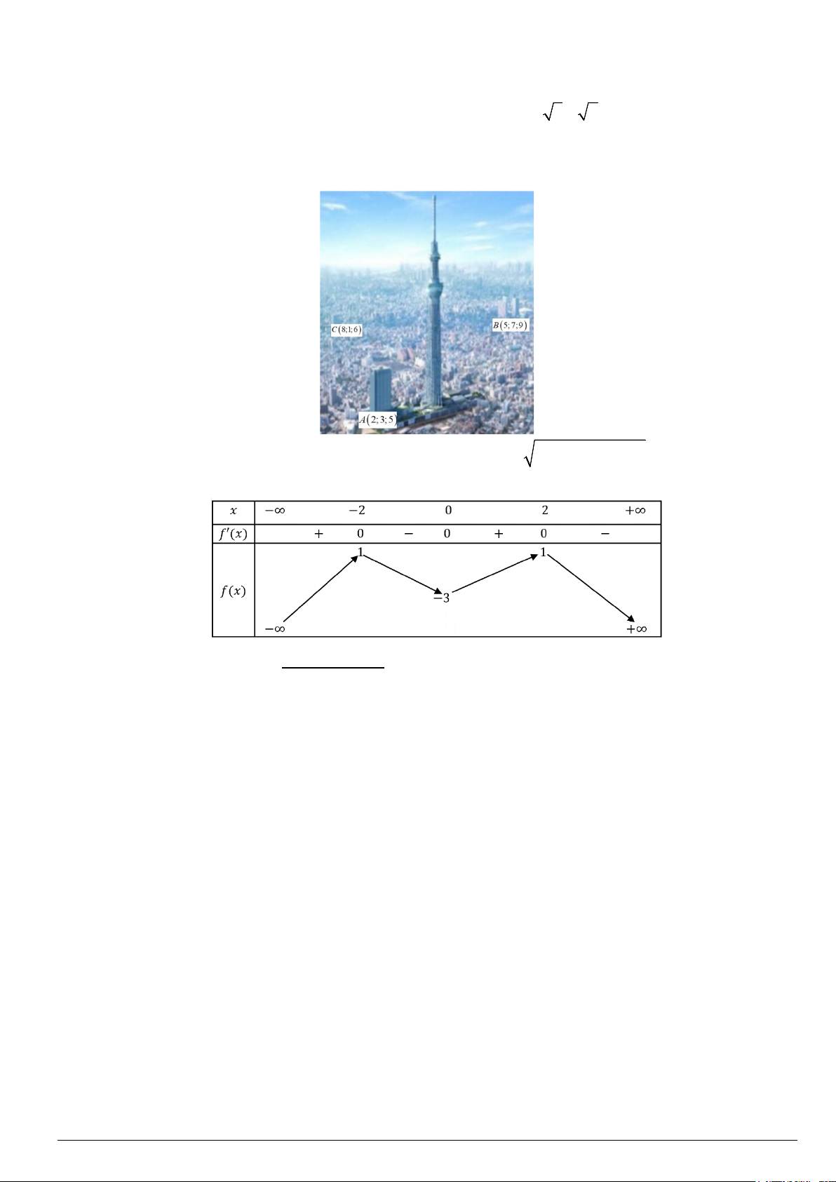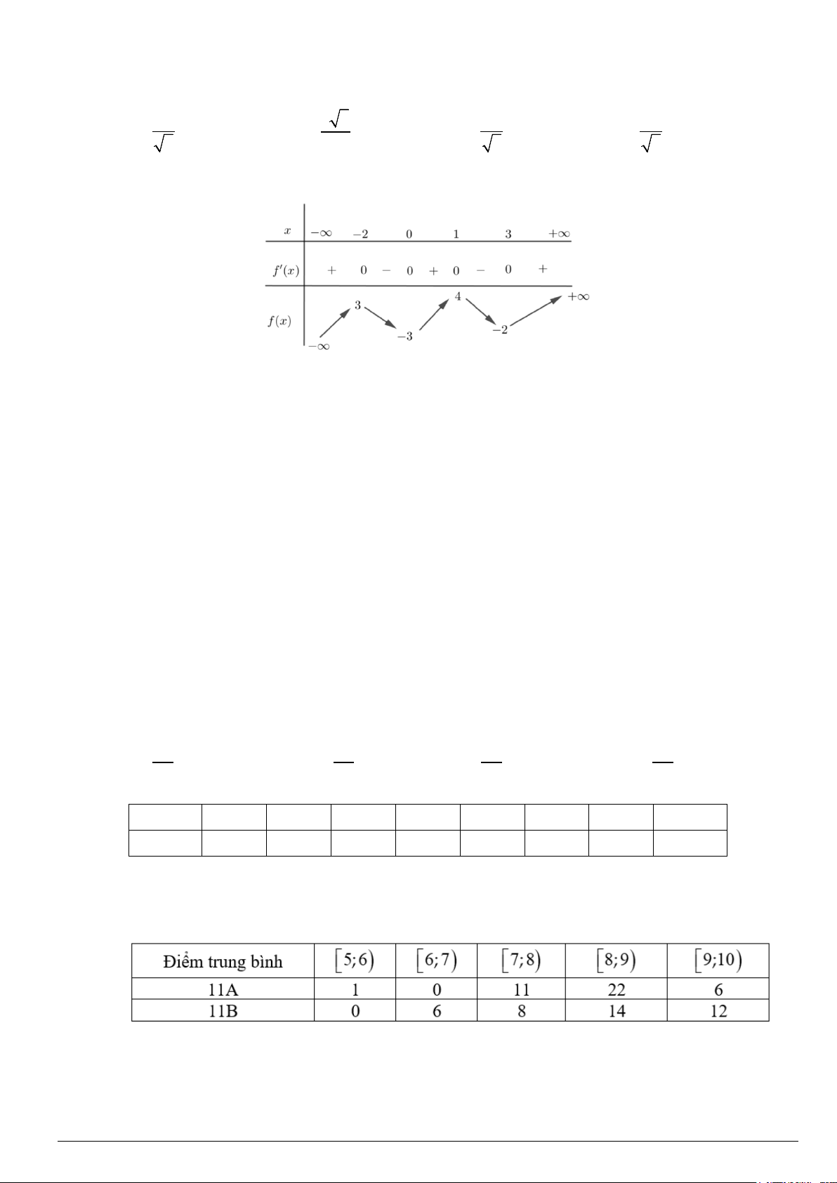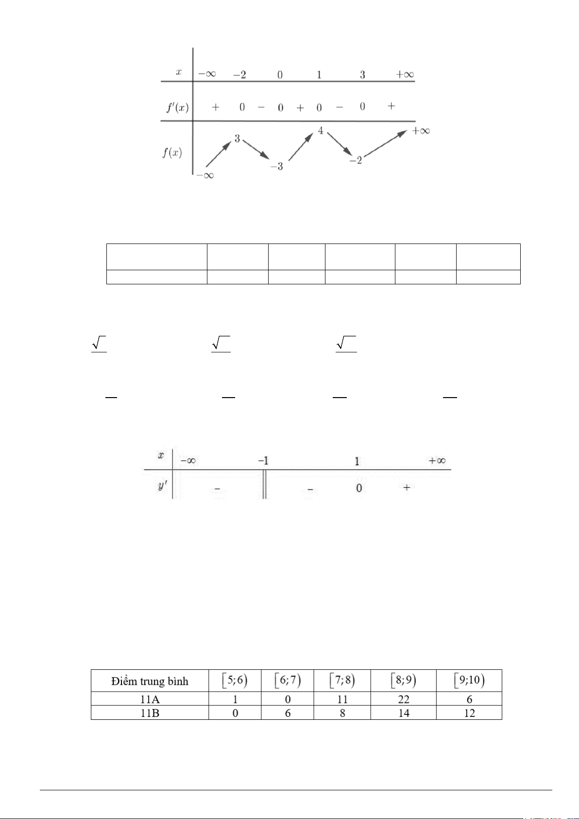 Câu 6: Cho f (x) là hàm bậc bốn và có bảng biến thiên như hình vẽ
