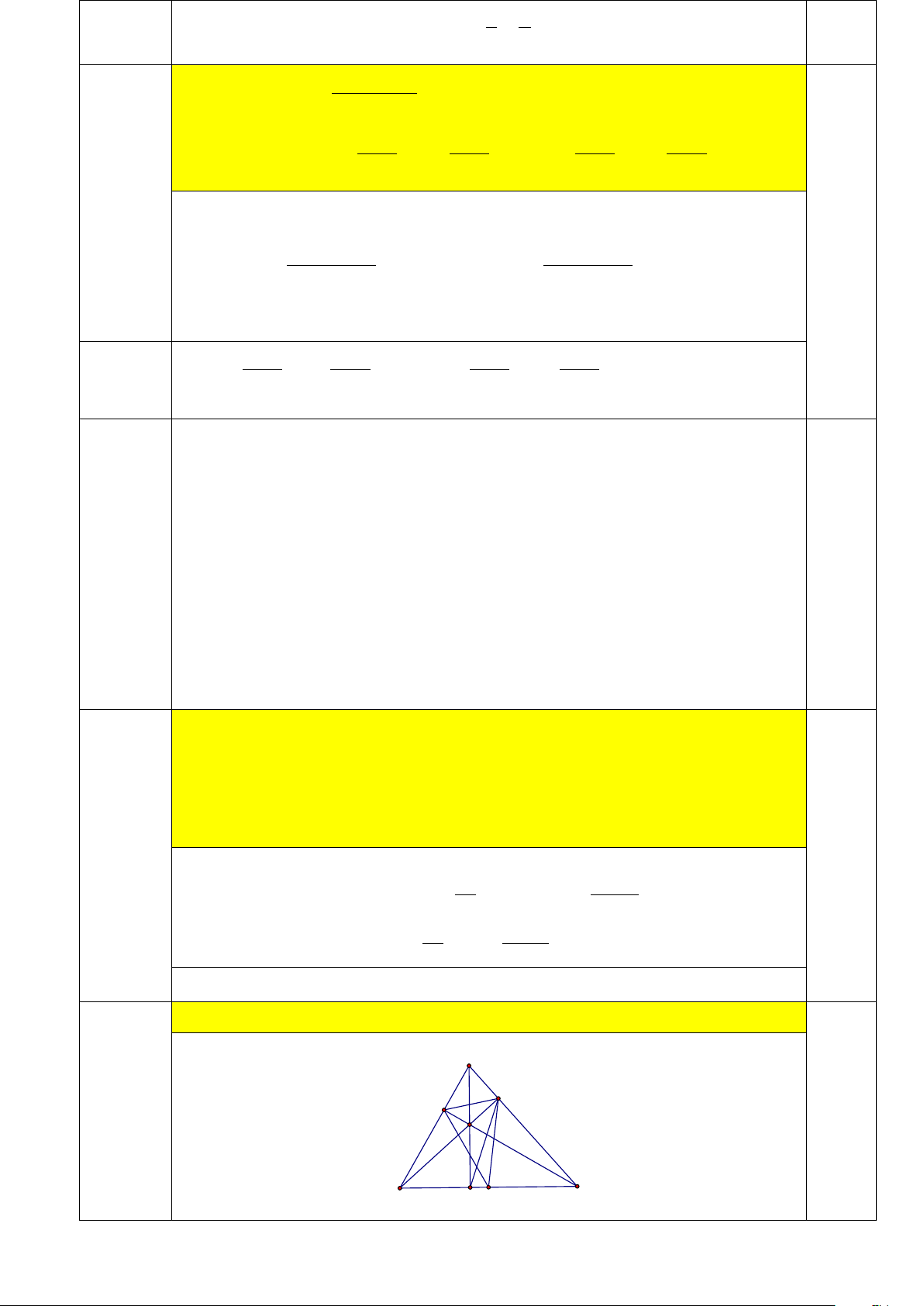 Câu 5d Tam giác ABC có thêm điều kiện gì để 1,5 điểm 2 2 2 . . . AB AC BC DH DA EH EB FH FC + + + + = . 4 0,75 2 2 (DB DC) . . BC DHC DBA DH DA DB DC + ∆ ∆ ⇒ = ≤ = , tương tự ta có 4 4 2 2 2 AB AC BC 0.75