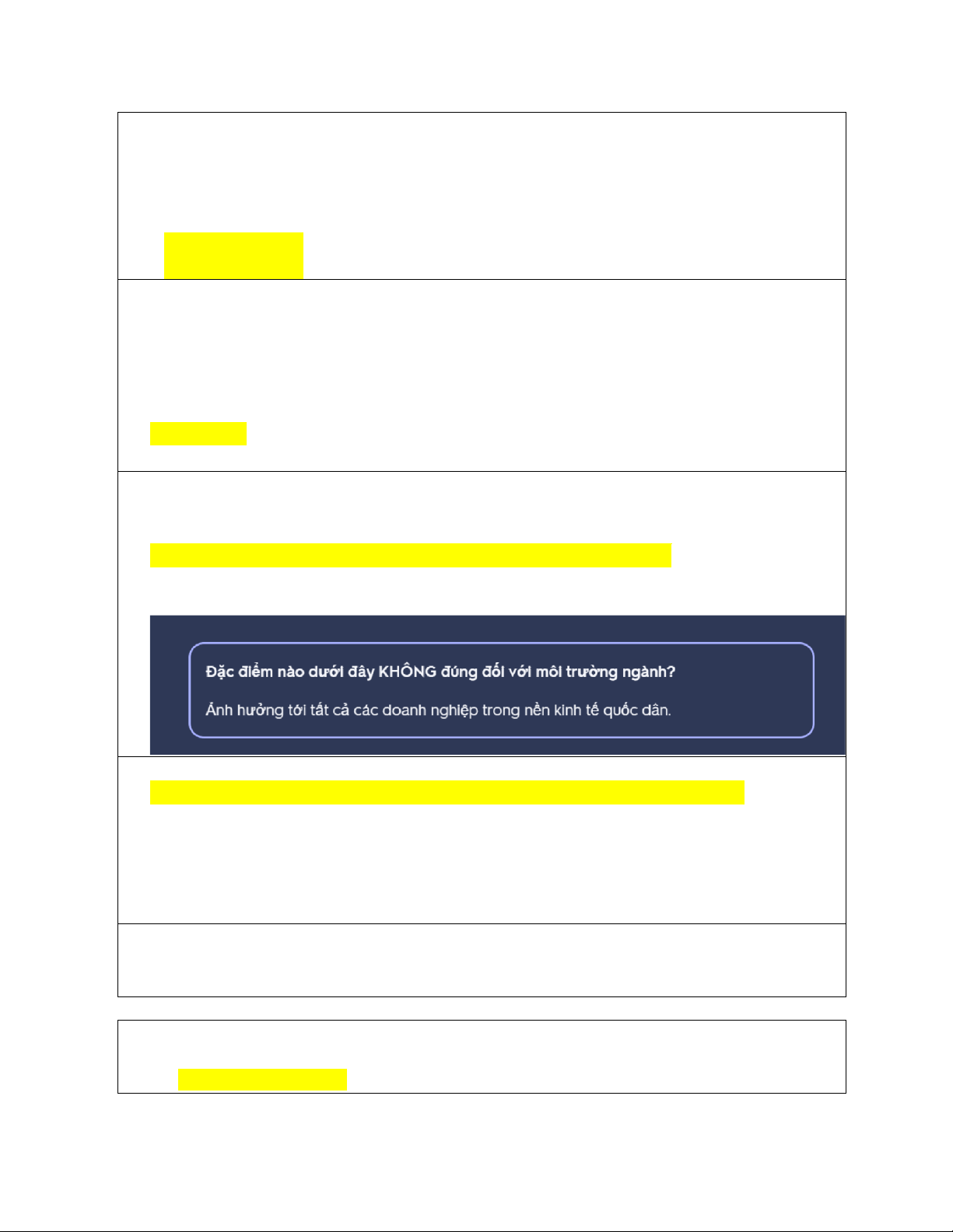 14. Đặc điểm nào dưới đây không đúng đối với môi trường ngành?