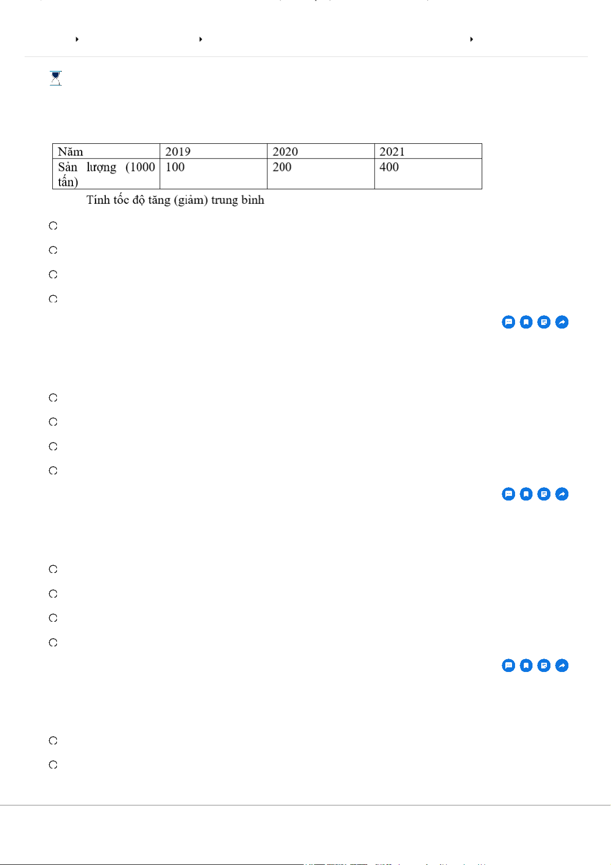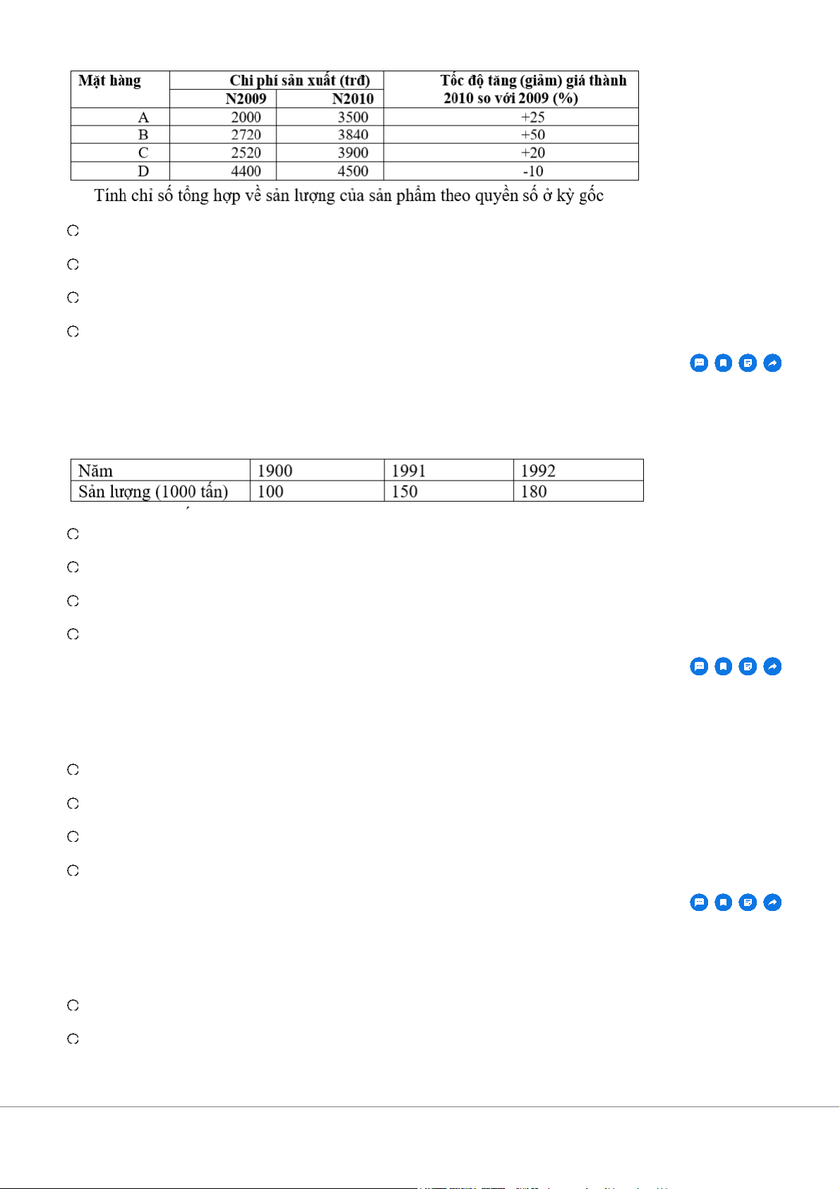 Sản lượng 3 năm qua của một xí nghiệp A như sau A. 1,2 lần B. 1,3 lần C. 1 lần D. 1,1 lần Câu 2