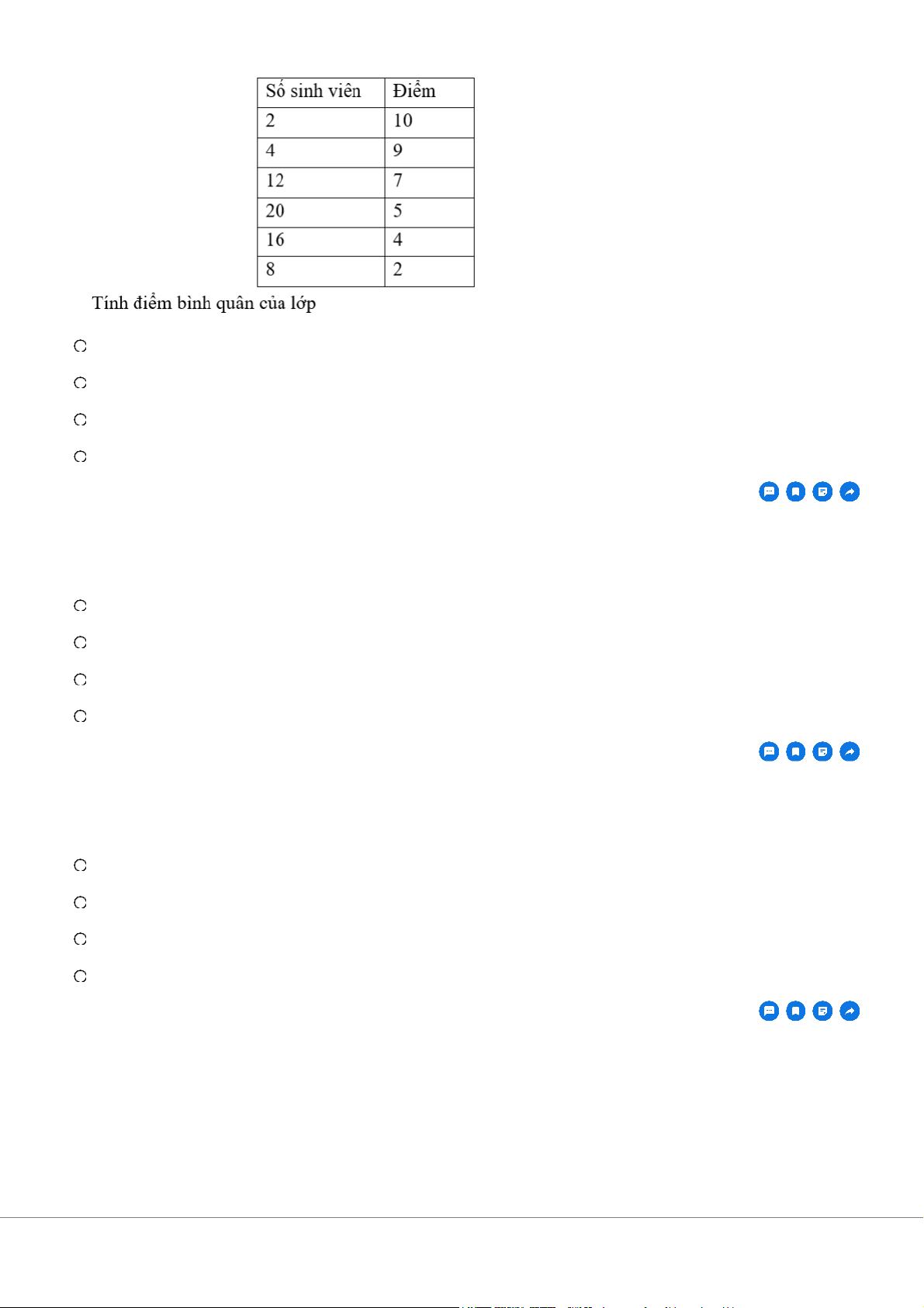 Kết quả thi kết thúc học phần của một lớp như sau A. 6,2 B. 7,6 C. 8,3 D. 5,1 Câu 11