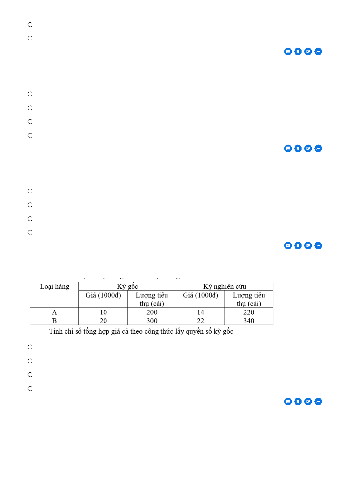 Cho số liệu 2 loại hàng hóa trên thị trường như sau: A. 1,232 B. 1,183 C. 1,175 D. 1,715 Câu 20