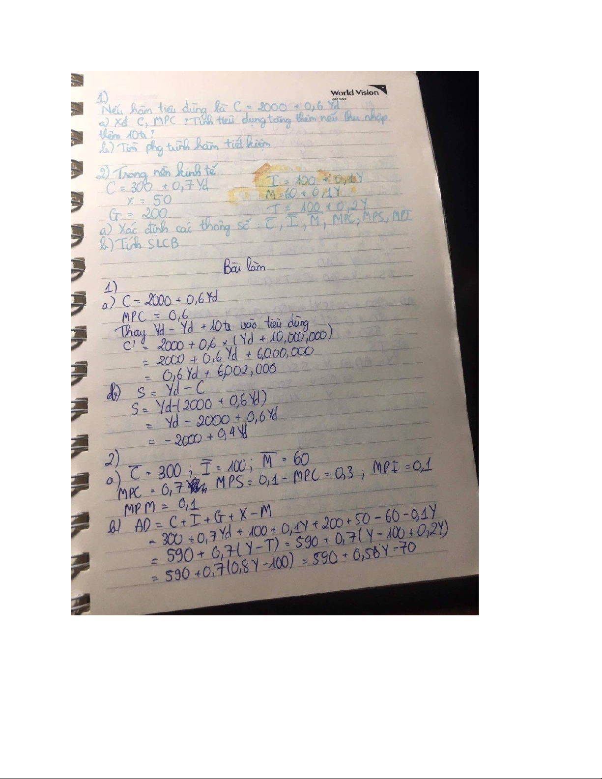 Xác định C,MPC? Tính tiêu thụ tăng thêm nêu thu nhập thêm 10 triệu? B)