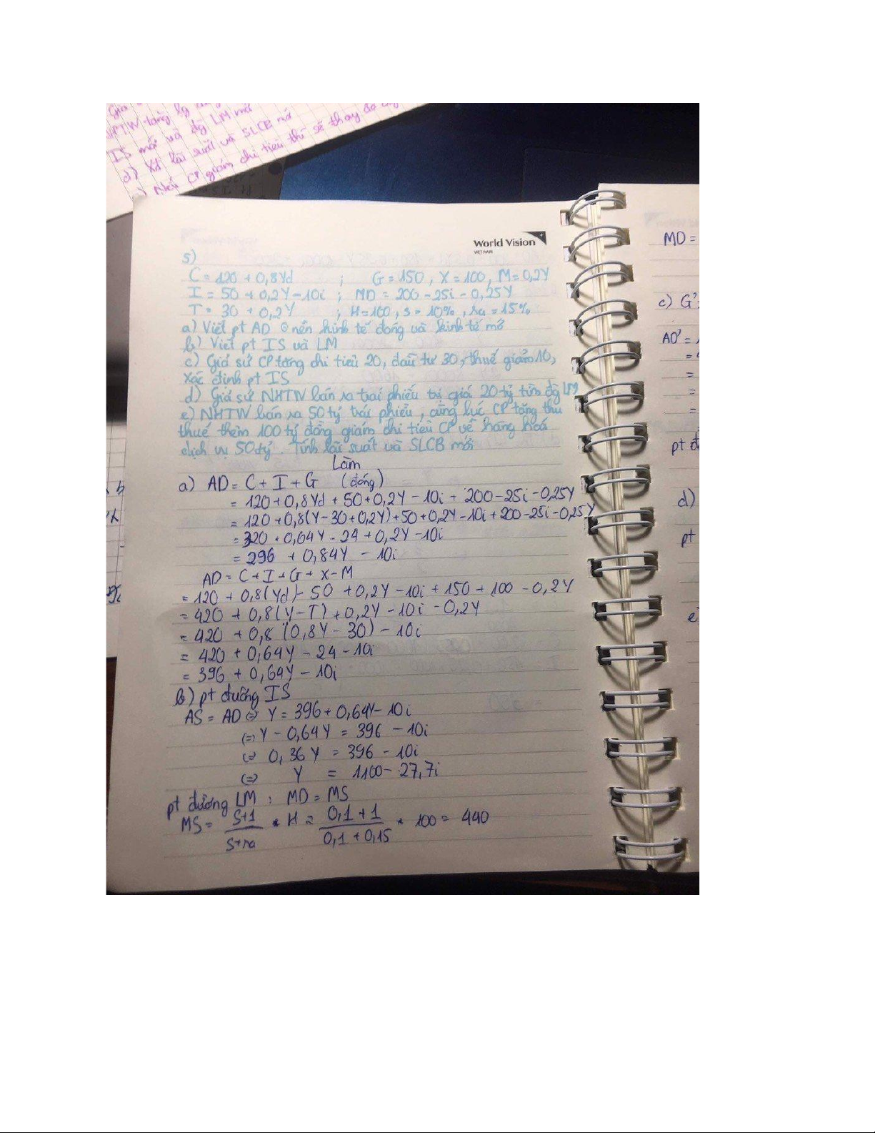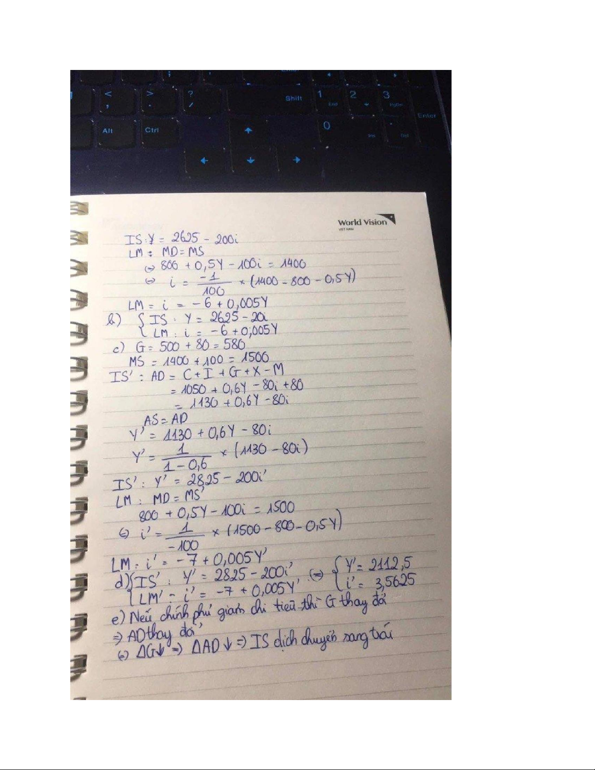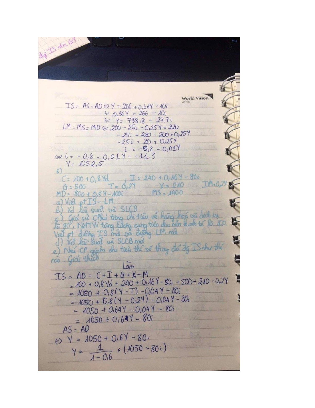lượng cung tiền cho nền kinh tế là 100. Viết phường trình đường IS mới và đường LM mới D)