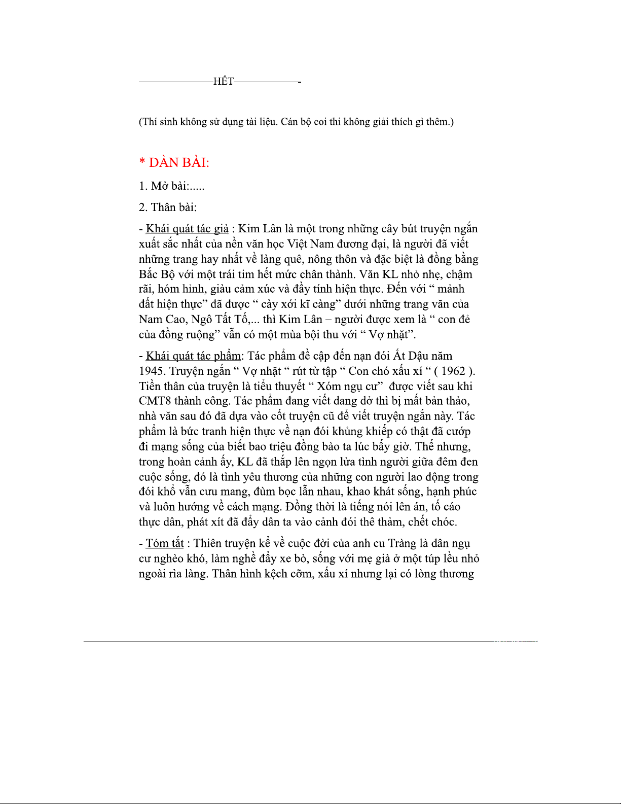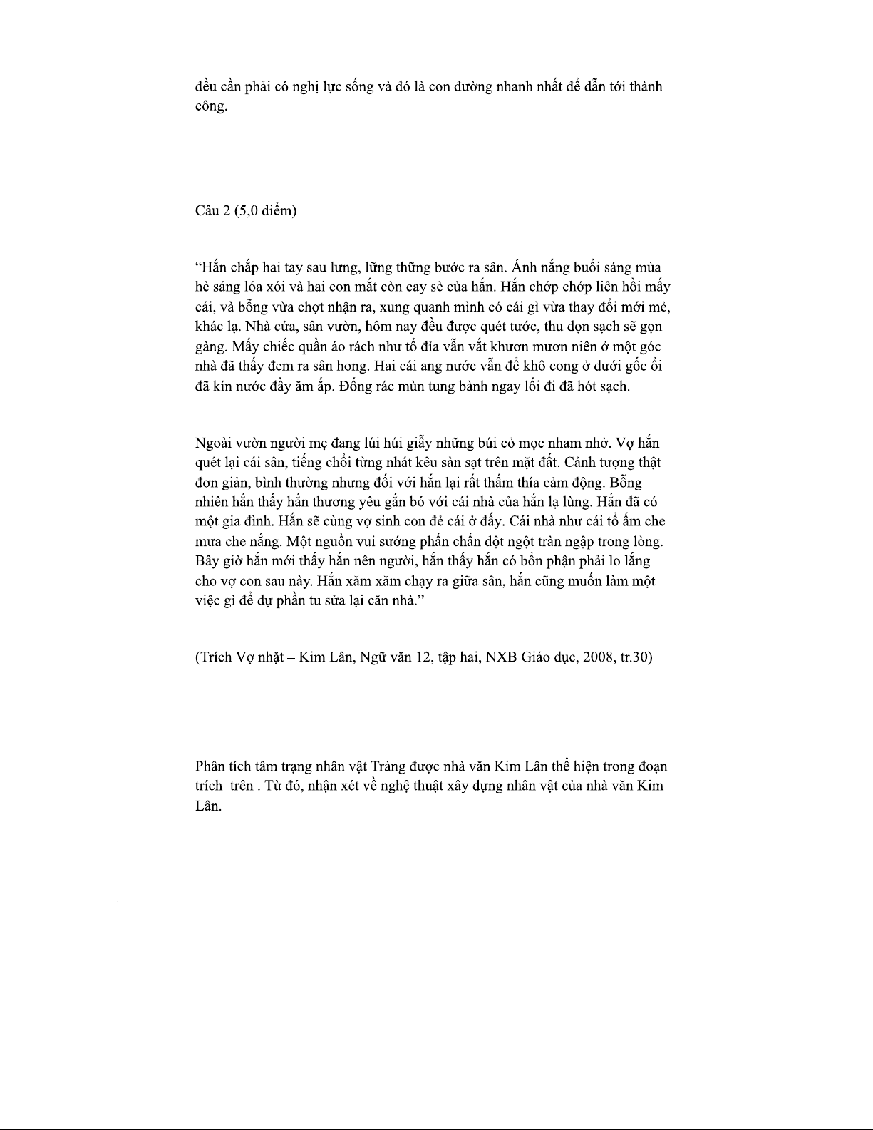 Đề thi thử số 1 môn Ngữ văn - Phân tích tác phẩm "Vợ nhặt"