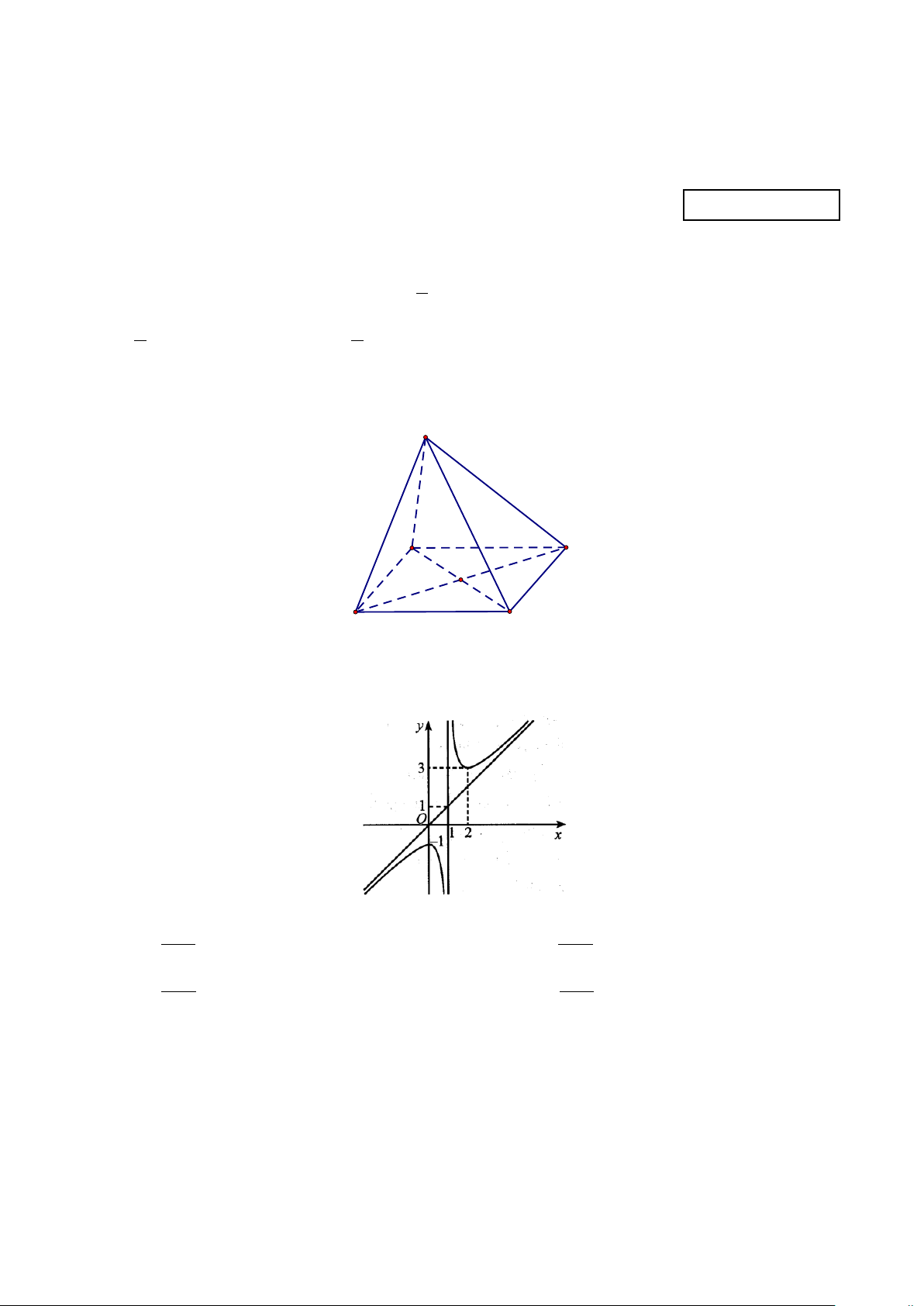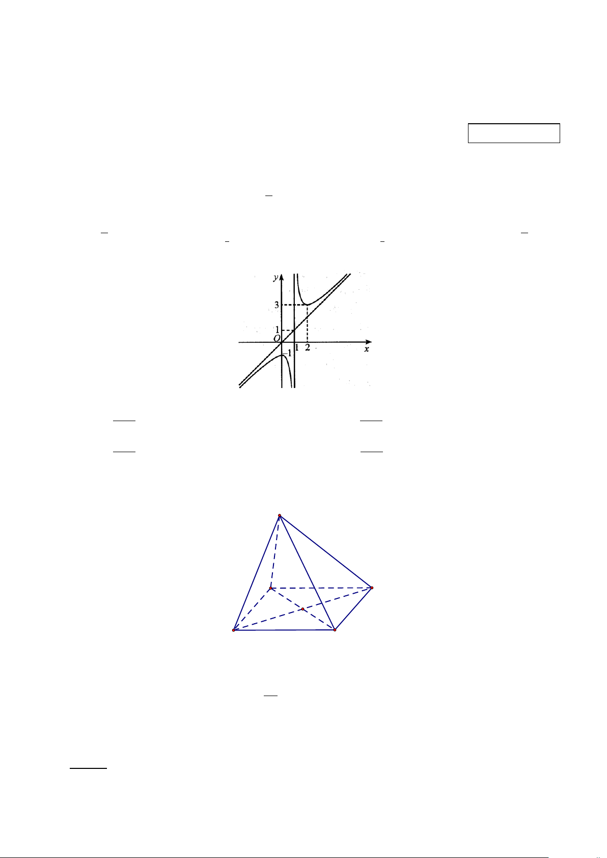 Câu 3: Hàm số nào sau đây có đồ thị là đường cong như hình vẽ ? A. 1 y = x − . B. 1 y = −x − . x −1 x −1 C. 1 y = x + . D. 1 y = −x + . x −1 x −1