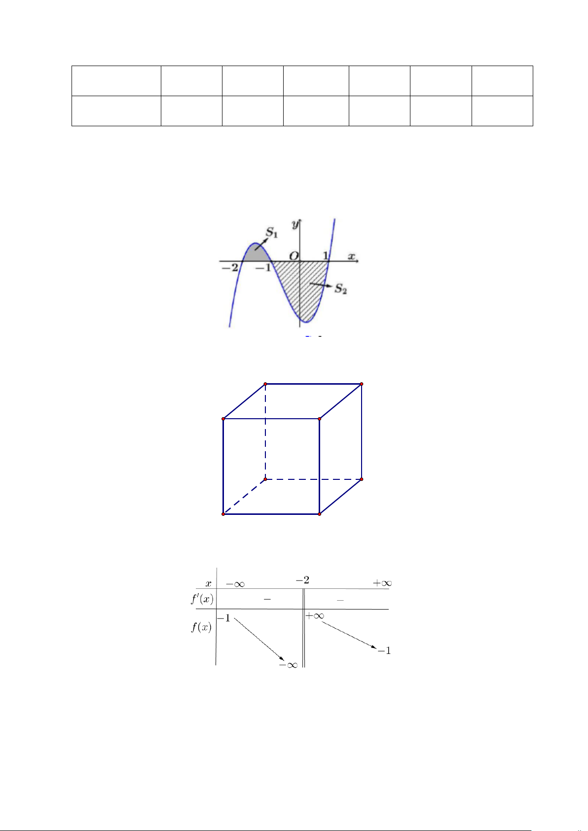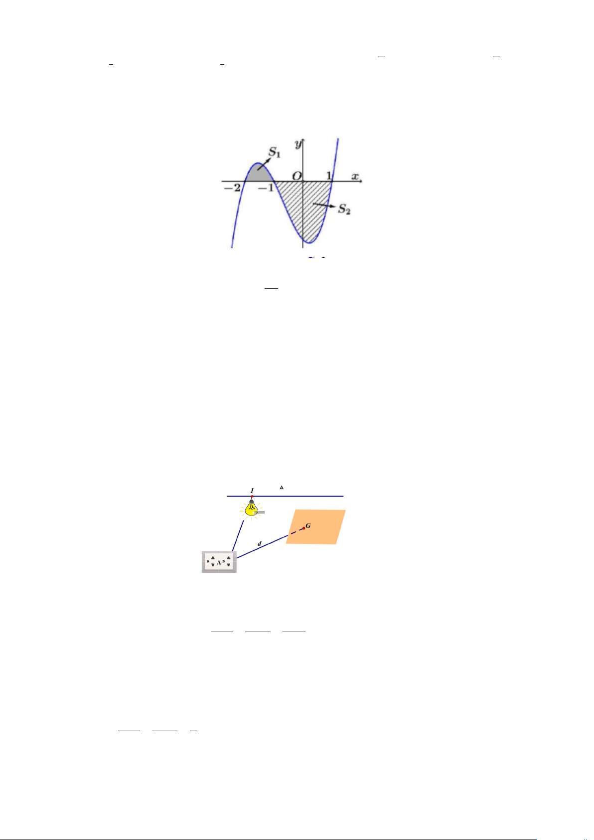 Câu 7: Cho hàm số y = f (x) có đồ thị như hình vẽ. Biết diện tích phần tô đậm là S = 2 và diện 1 1