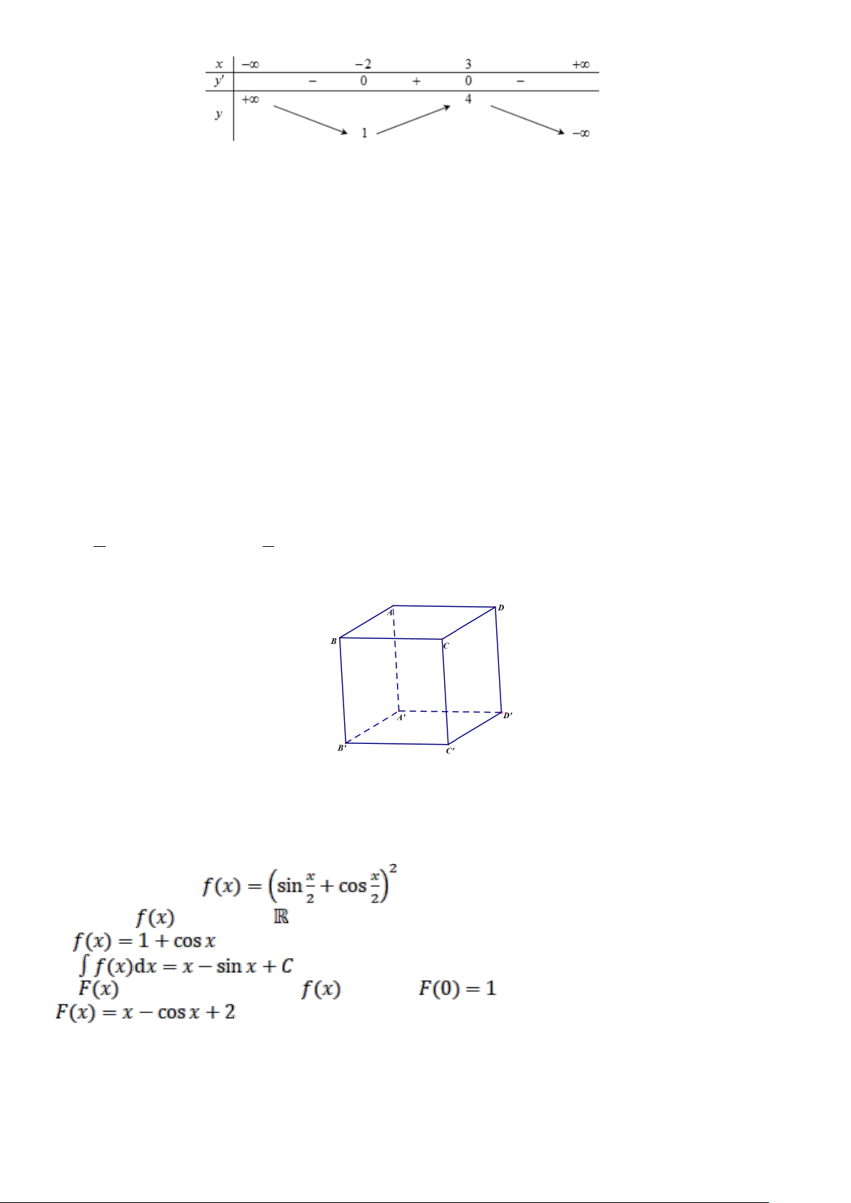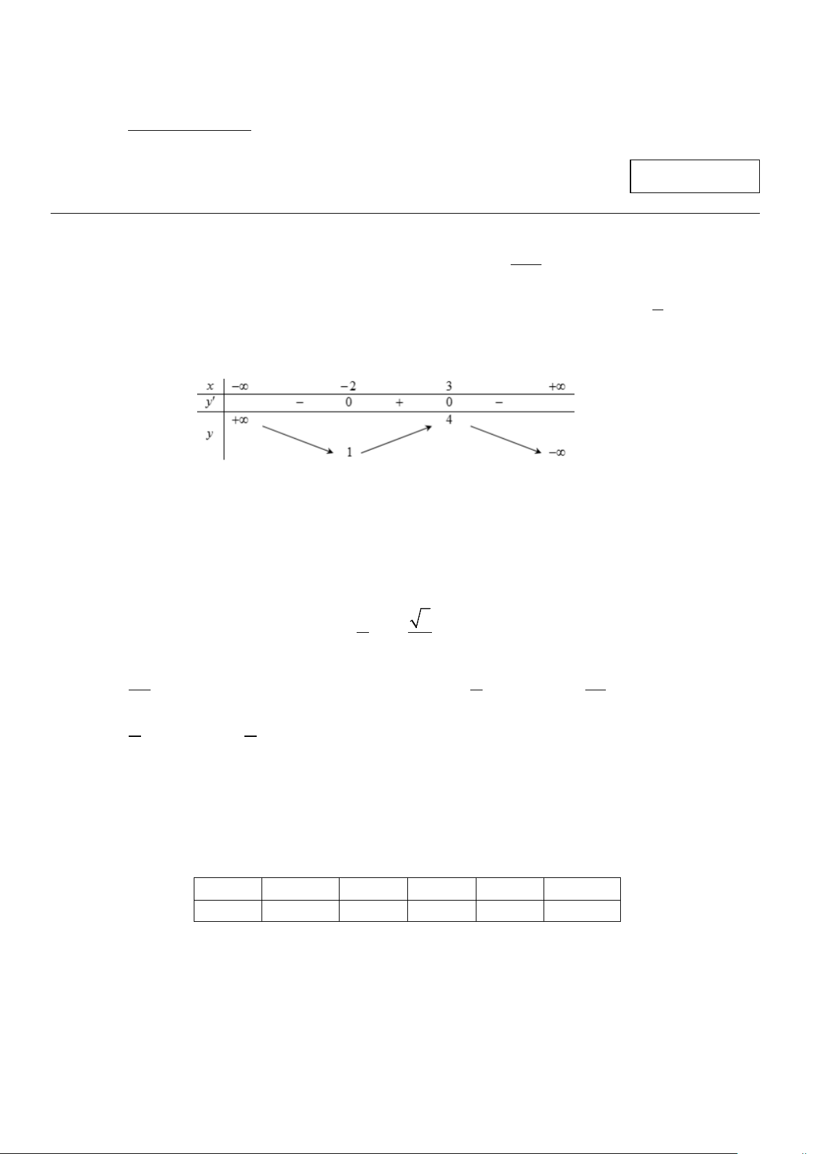 Câu 7: Cho hàm số y = f (x) liên tục và có đạo hàm trên . Hàm số đã cho có bảng biến thiên như sau: Trang 1/5 - Mã đề 1001