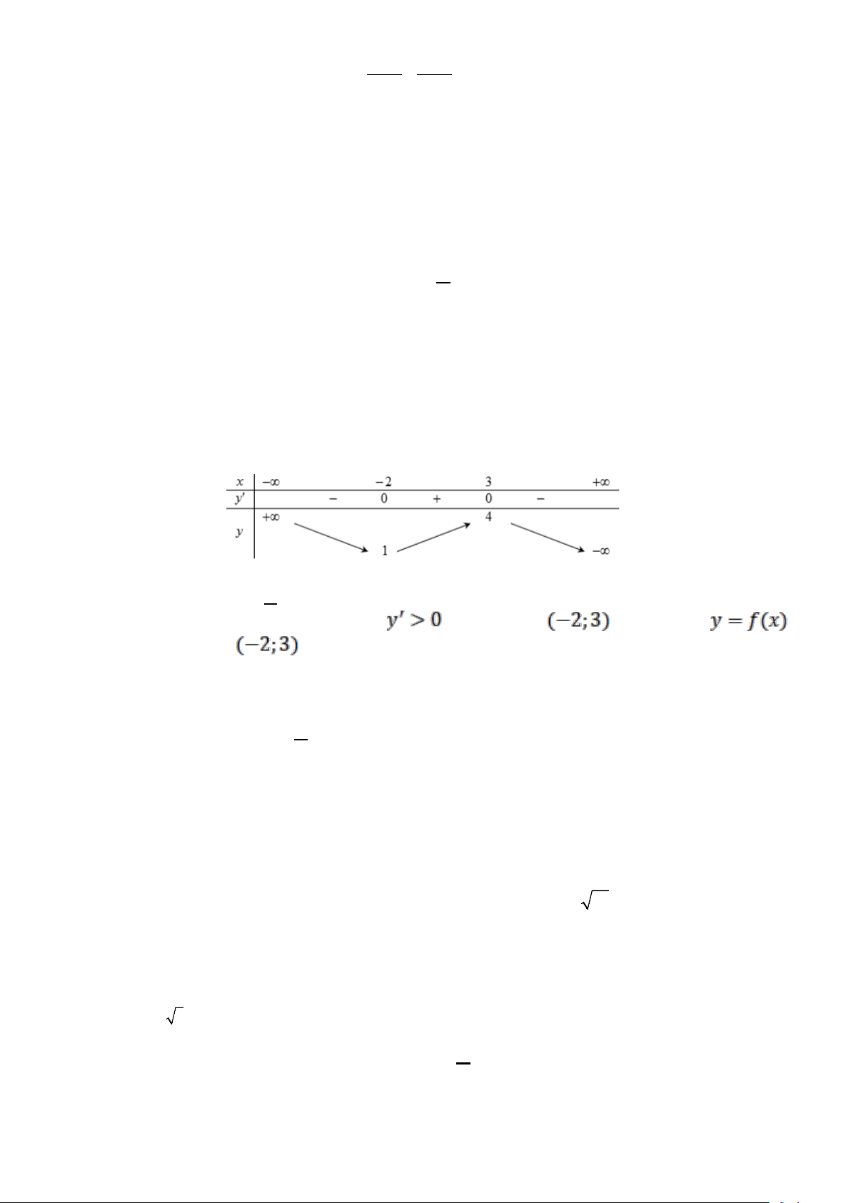 Hàm số đã cho đồng biến trên khoảng nào trong các khoảng sau? A. ( 2; − 3) . B. ( ; −∞ 4) . C. (3;+∞) . D. (1;4) .