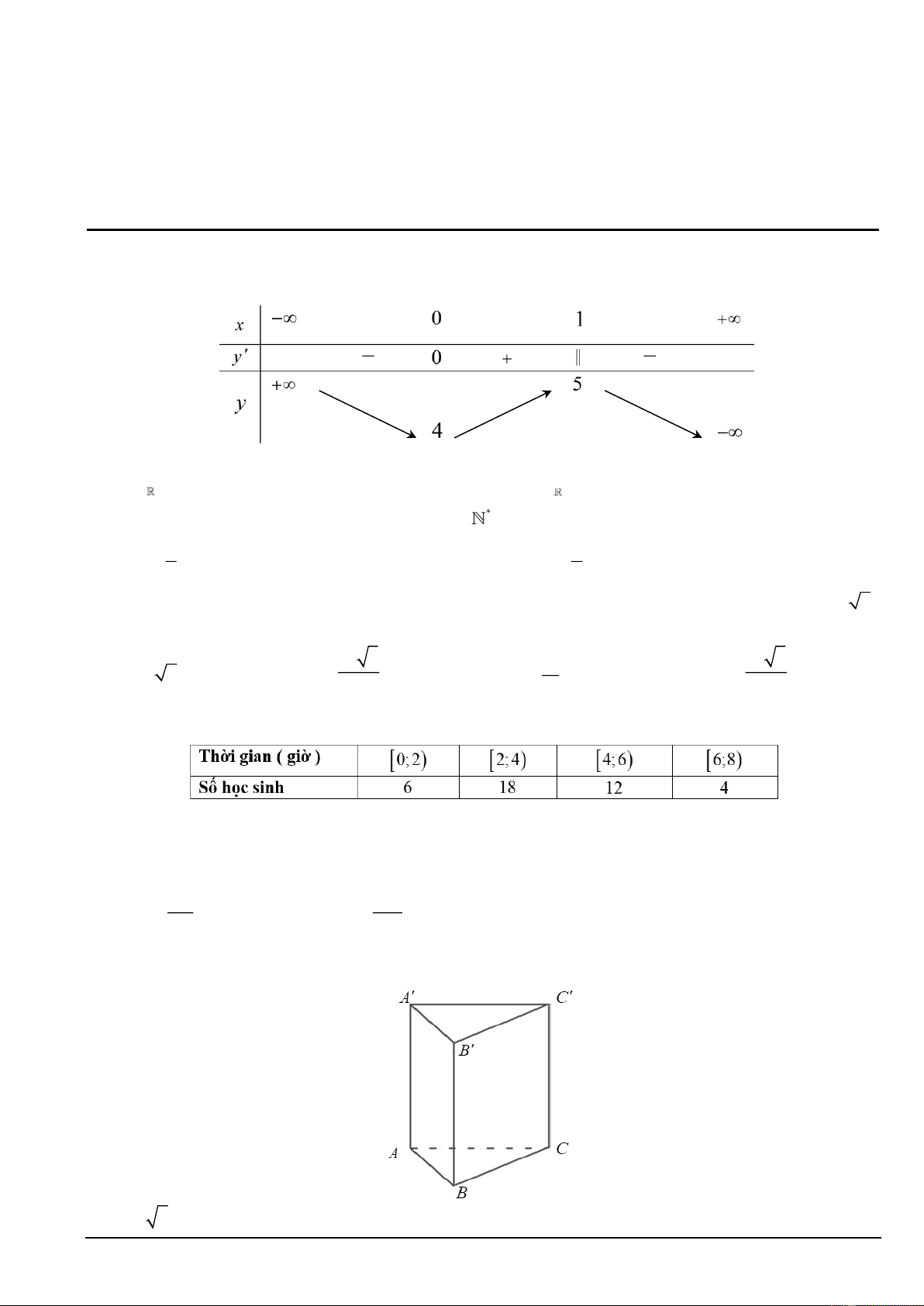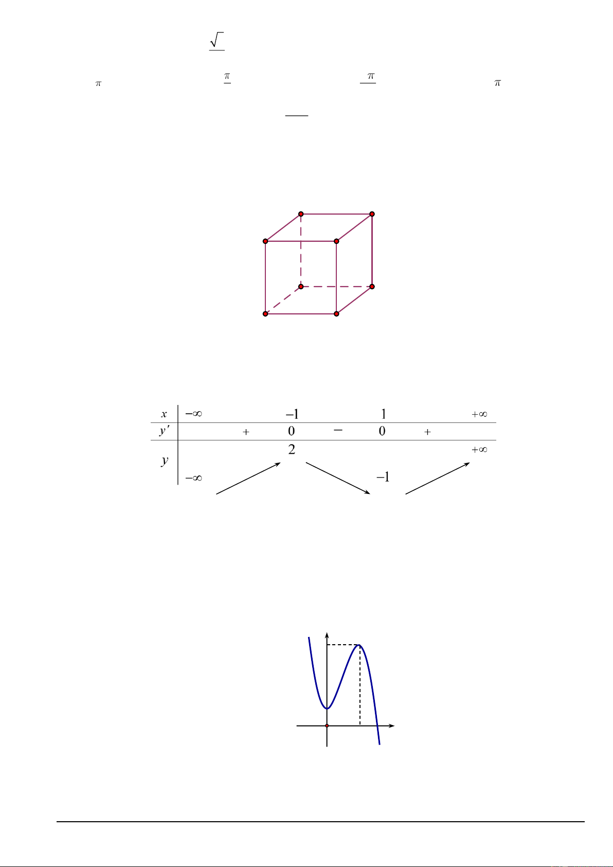 Câu 1. Cho hàm số y = f ( x) có bảng biến thiên như hình vẽ bên. Mệnh đề nào dưới đây đúng?