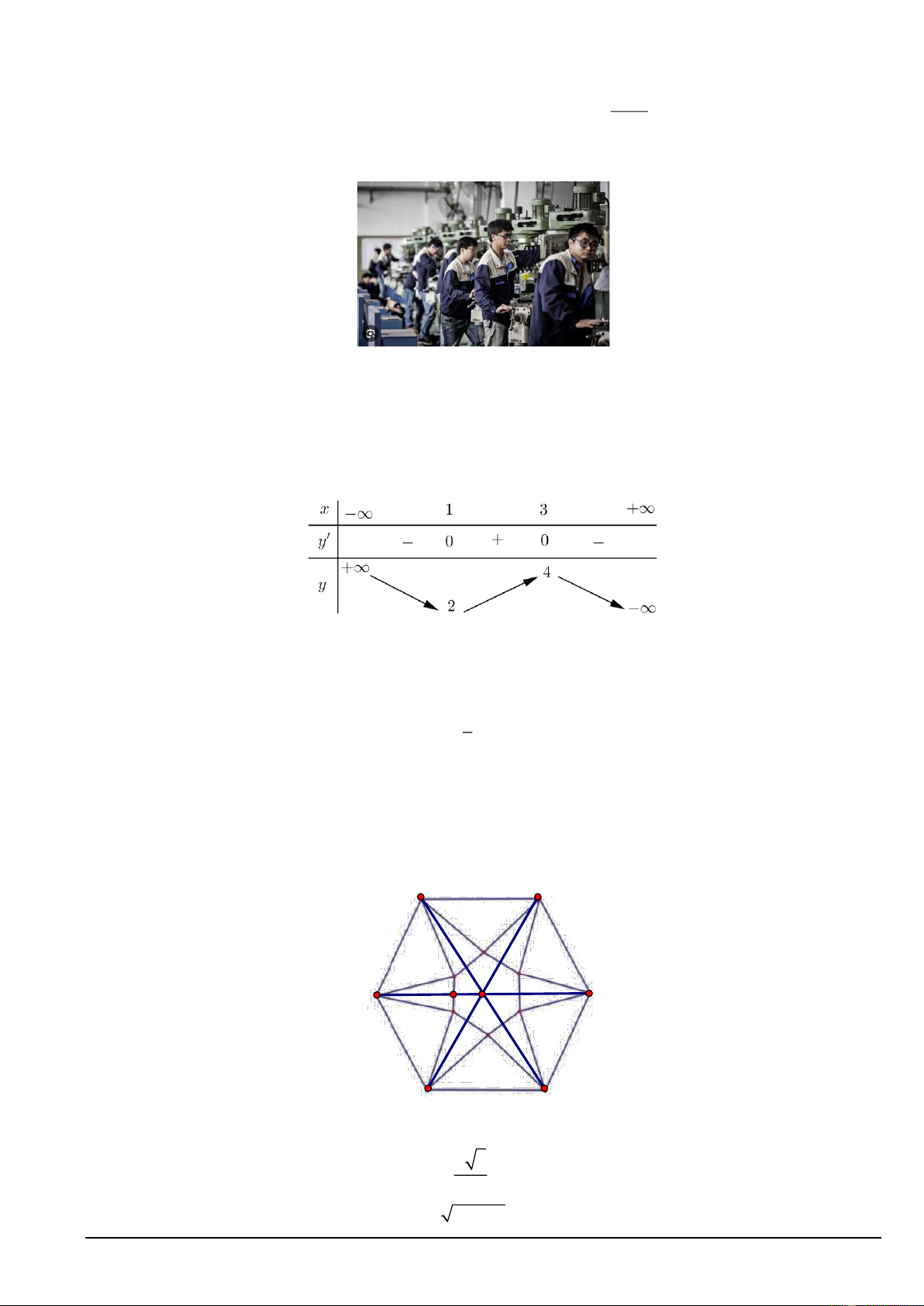 d) Thể tích lớn nhất mà khối chóp lục giác đều có thể đạt được là ( 3 cm ). 125 Câu 3. Cho hàm số 3 2