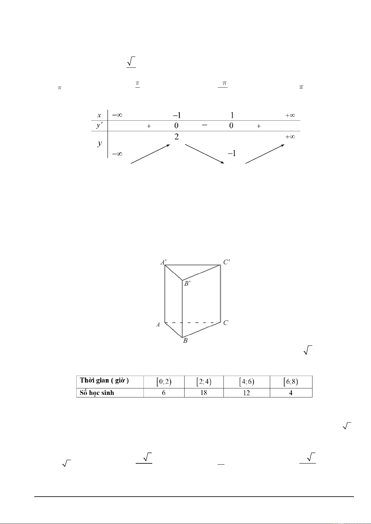 W / m ) thì đảm bảo sức khỏe cho công nhân. Câu 2. Cho hàm số 3 2