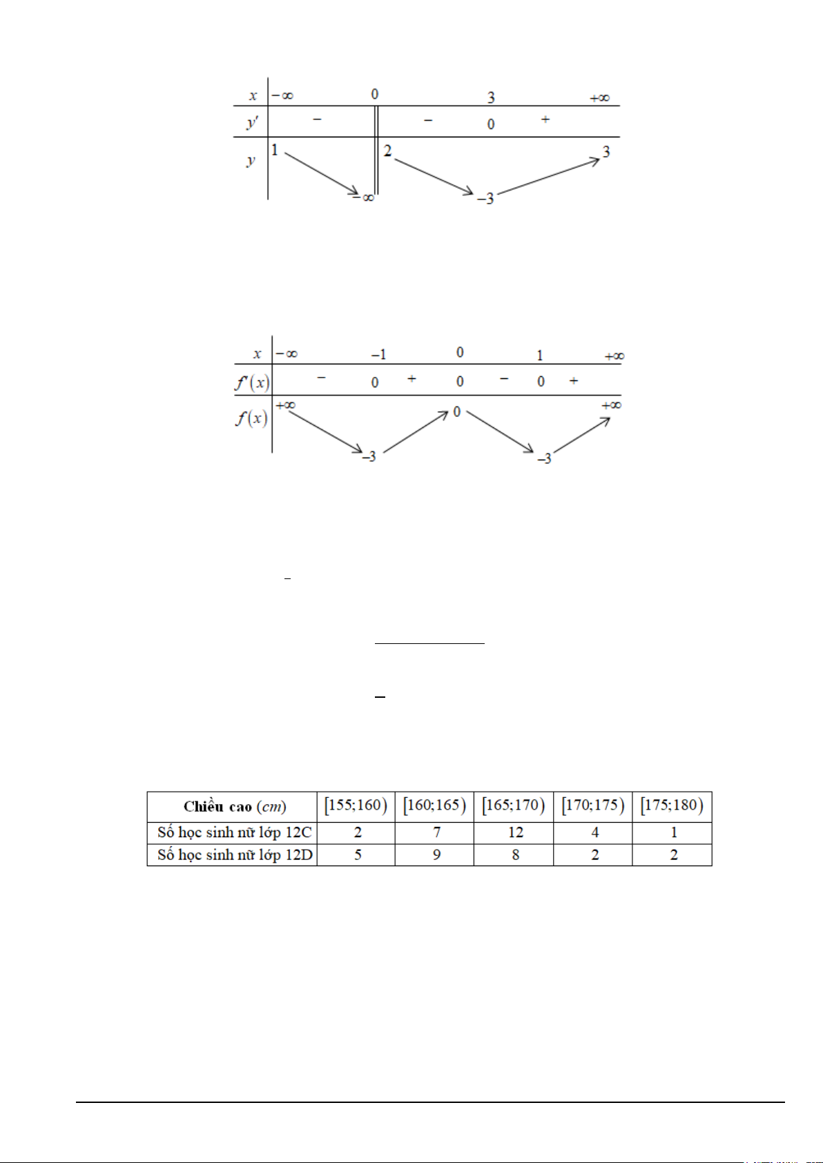 Câu 8. Cho hàm số y = f (x) có bảng biến thiên như sau: