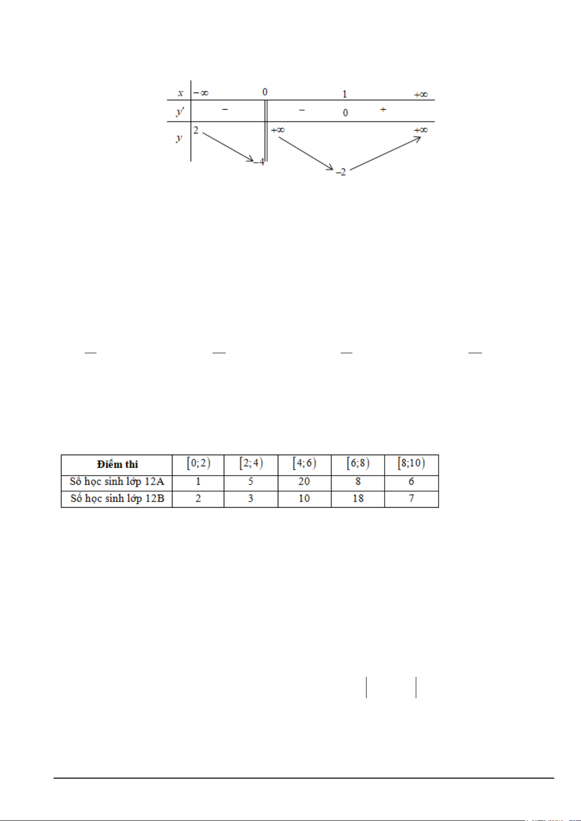 Câu 10. Cho hàm số y = f (x) có bảng biến thiên như sau: