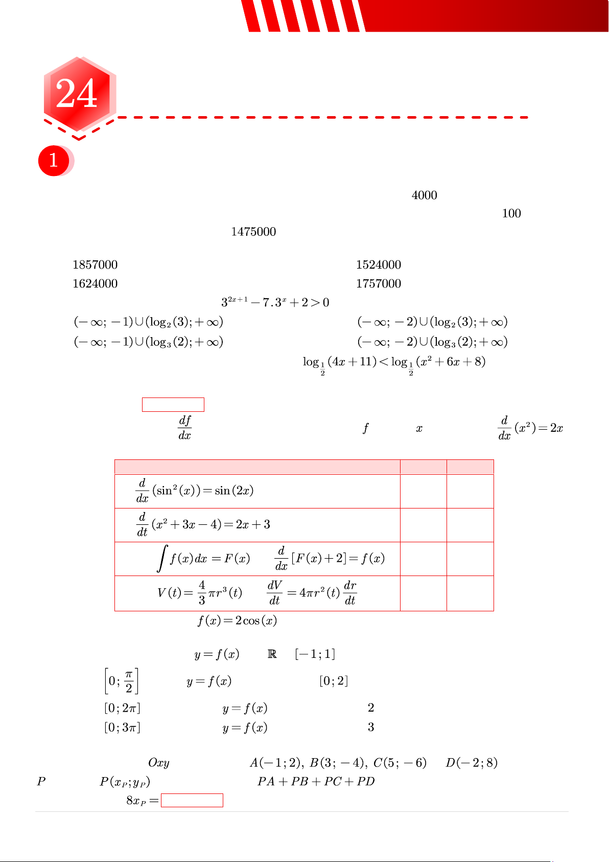 Câu 26. [Mức 1] Kéo và thả các phương án thích hợp vào chỗ trống. Cho hàm số và