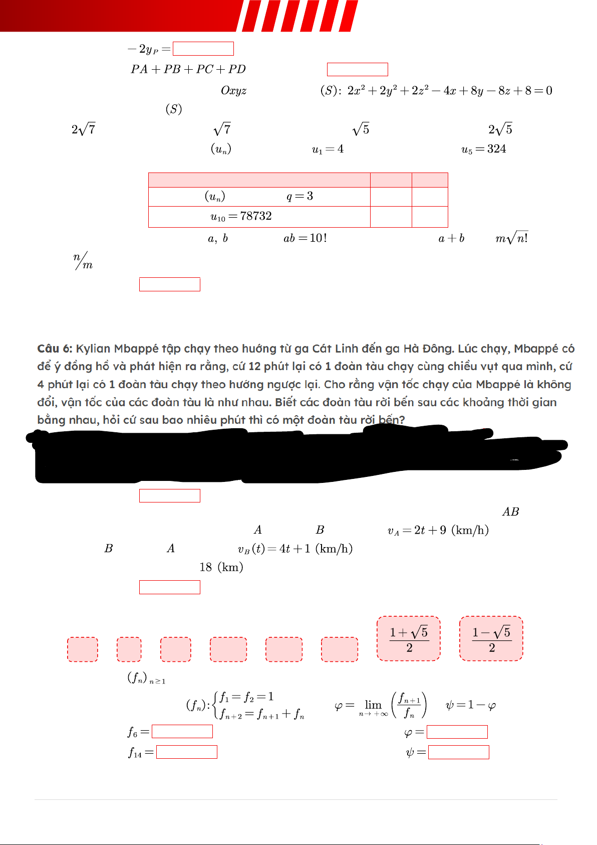 thoả mãn công thức truy hồi . Đặt và . a. Giá trị của . c. Giá trị của . b. Giá trị của . d. Giá trị của .