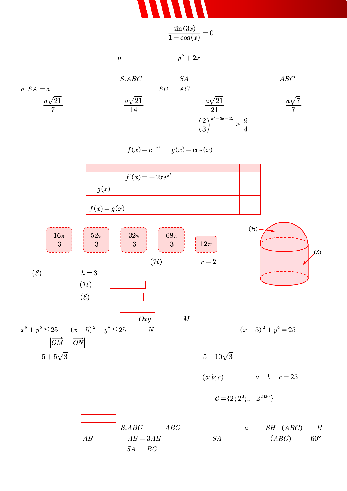 trình đã cho có nghiệm khi và chỉ khi tích . Giá trị của bằng ? ➢ Điền đáp án: .