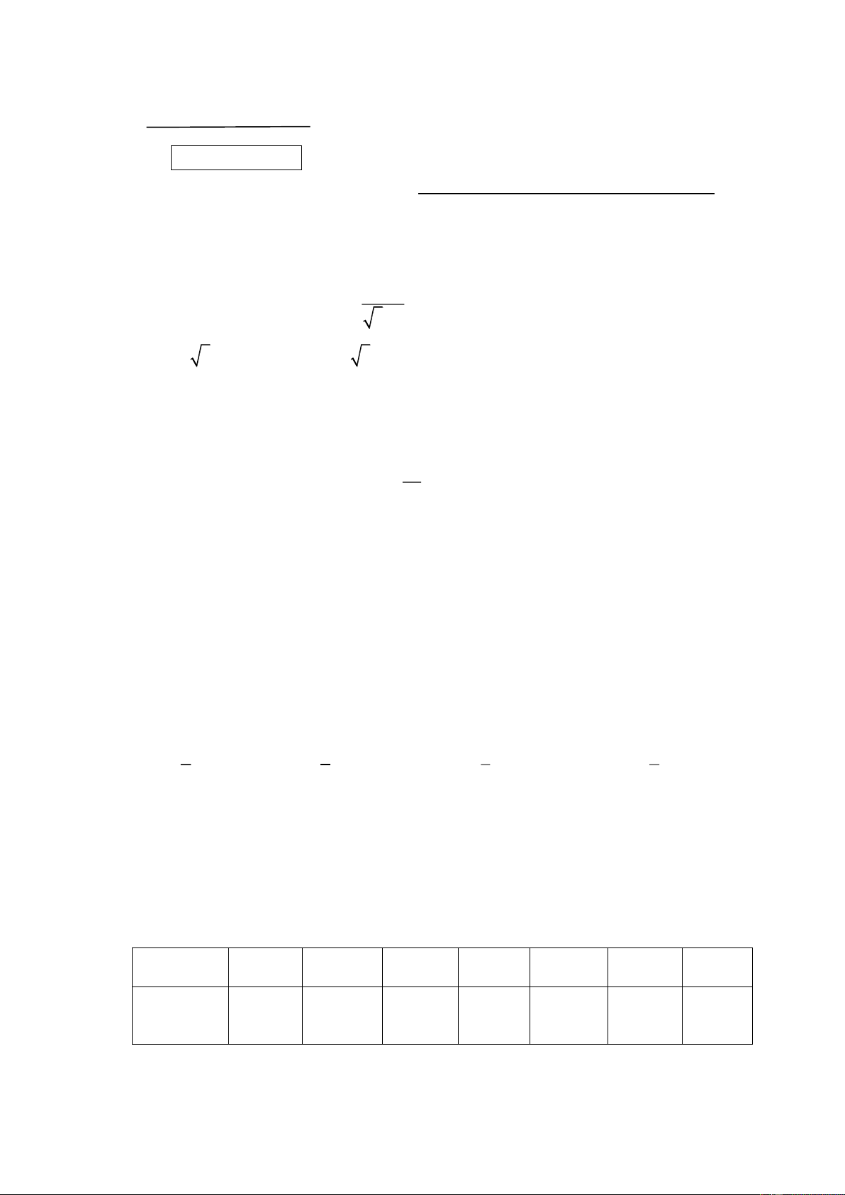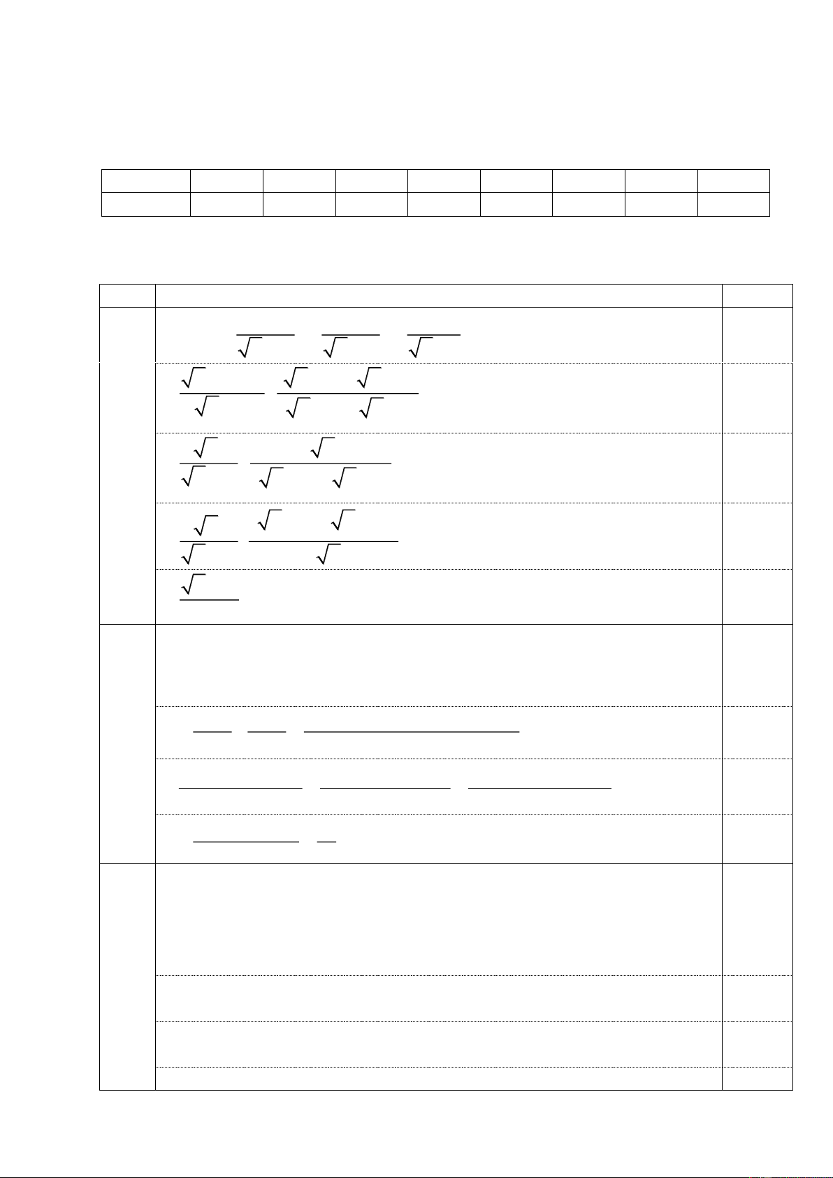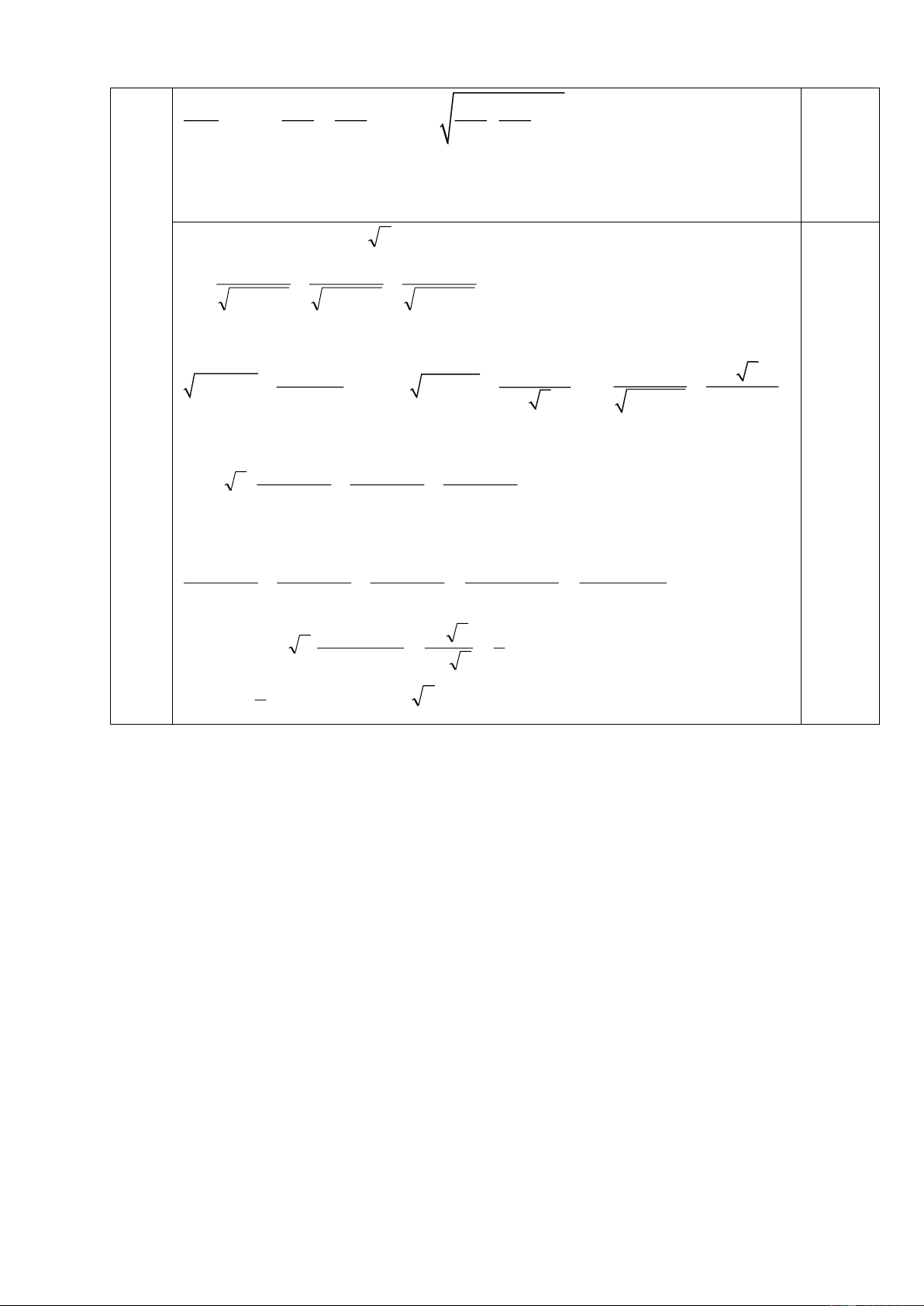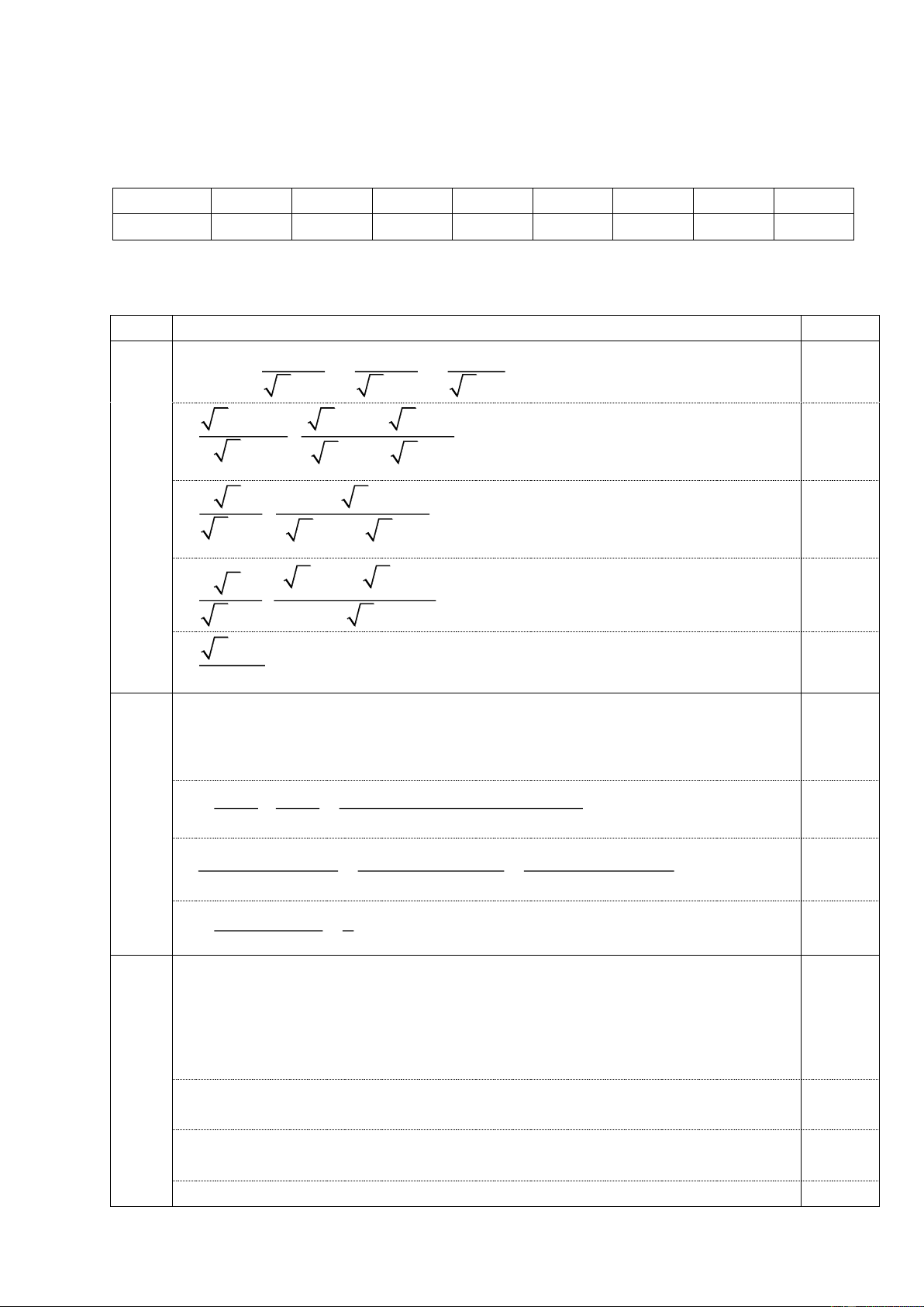 I. PHẦN TRẮC NGHIỆM (2 điểm, mỗi câu 0,25 điểm) Câu 1 2 3 4 5 6 7 8 Đáp án B C A C A B D C II. PHẦN TỰ LUẬN Câu Đáp án Điểm 1 1 1 P = 1 - : + x + 1 x + 1 x - 1 x + 11 x - 1 + x + 1 = : 0,25 x + 1 x + 1 x - 1 x 2 x 9 = : 0,25 x + 1 x + 1 x - 1 x + 1 x - 1 x = 0,25 x + 1 2 x x - 1 = 0,25 2