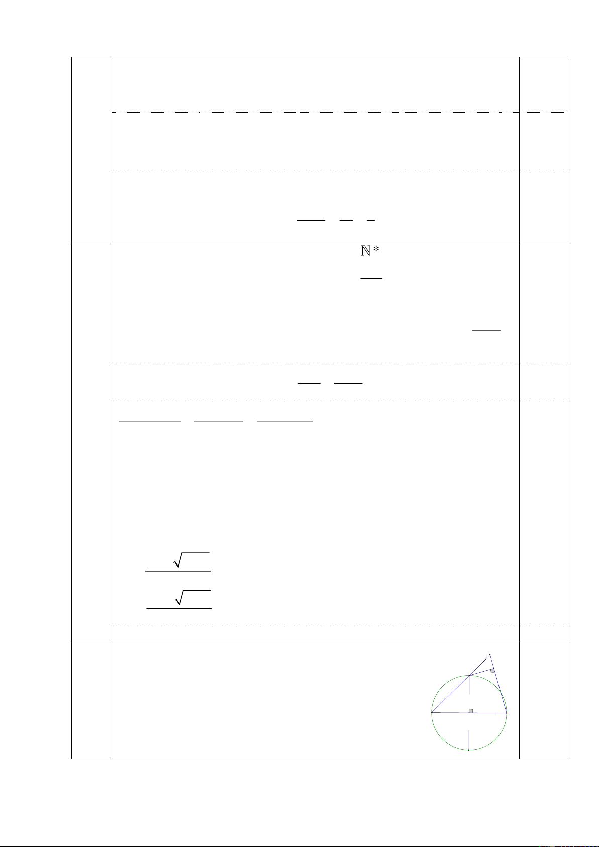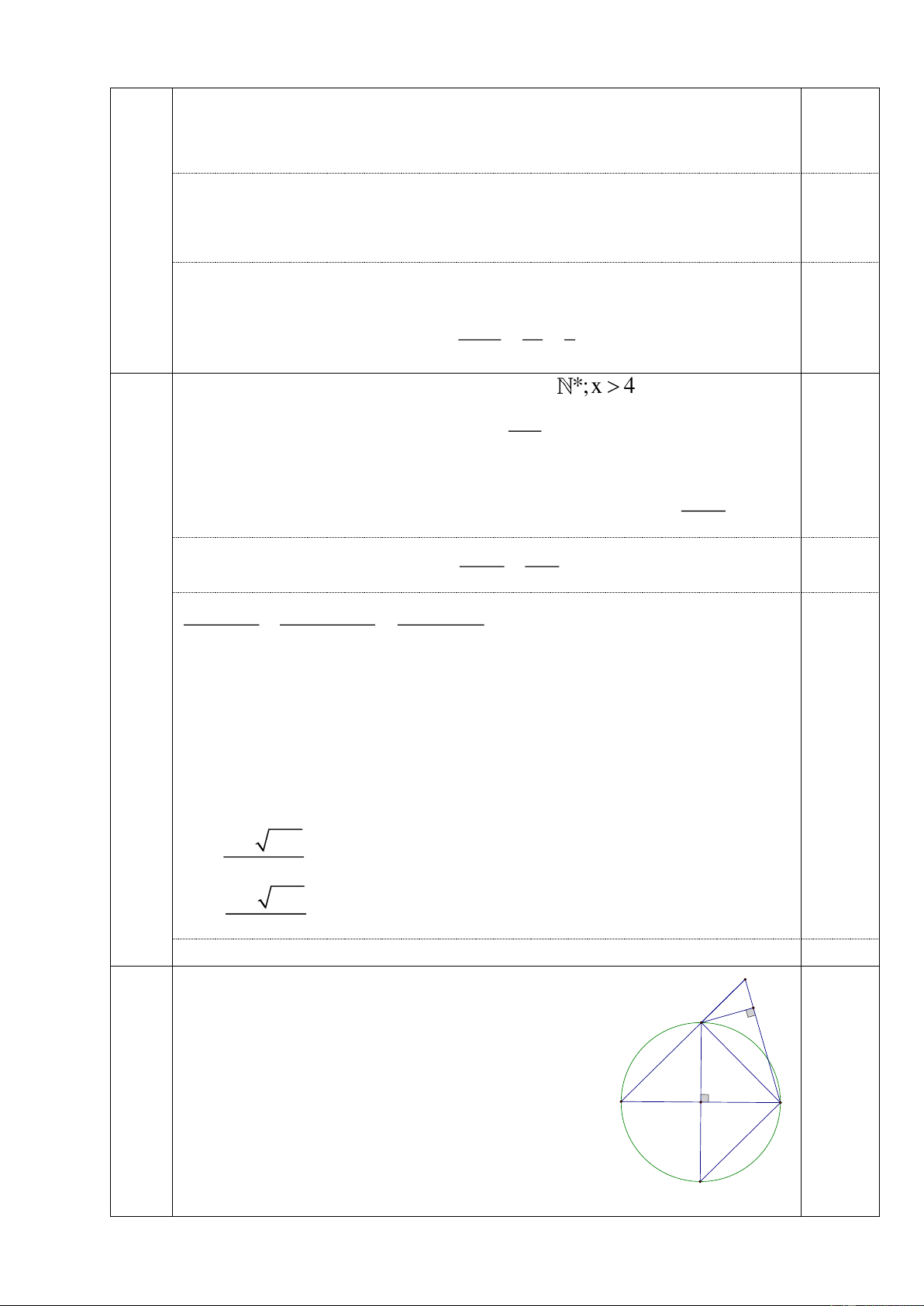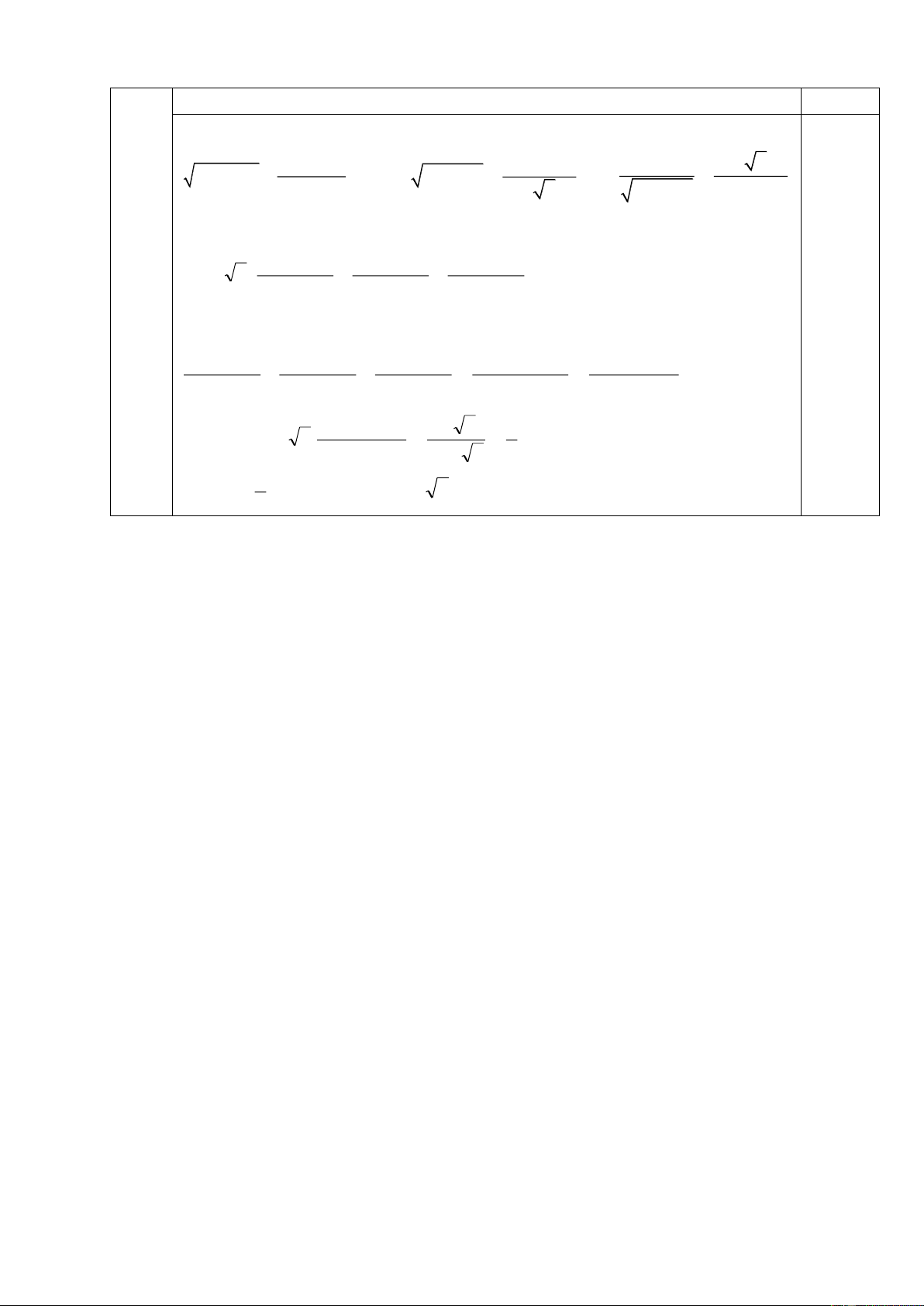 I. PHẦN TRẮC NGHIỆM (2 điểm, mỗi câu 0,25 điểm) Câu 1 2 3 4 5 6 7 8 Đáp án B C A C A A B D II. PHẦN TỰ LUẬN Câu Đáp án Điểm 2 1 1 P = 1 - : + x + 2 x + 2 x - 2 x + 2 2 x - 2 + x + 2 = : 0,25 x + 2 x + 2 x - 2 x 2 x 9 = : 0,25 x + 2 x + 2 x - 2 x + 2 x - 2 x = 0,25 x + 2 2 x x - 2 = 0,25 2