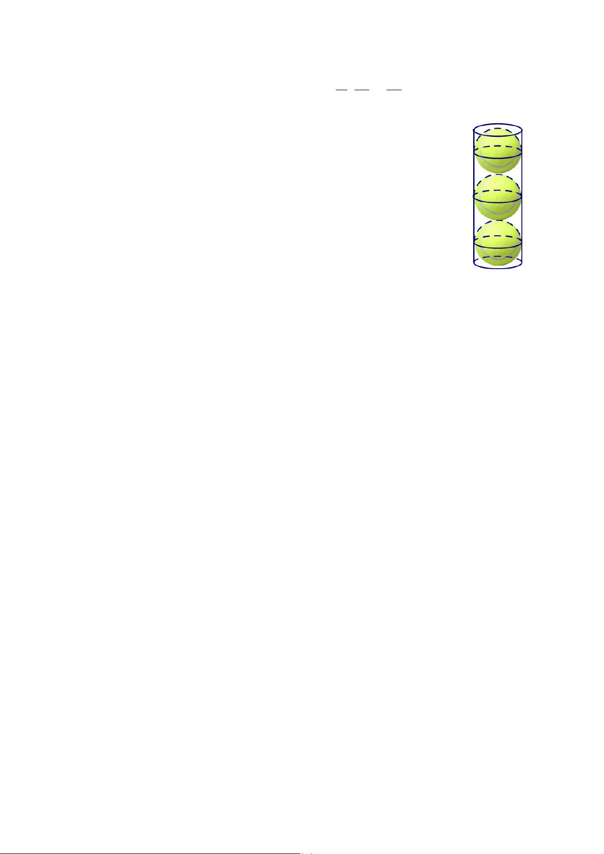 Thể tích của ba quả bóng tennis có dạng hình cầu là: 4 3 4 3 V 3. π R 3 π 3,2 = = ⋅ ⋅ ≈ 0,25 412 ( 3 cm . 2 2 ) 3 3