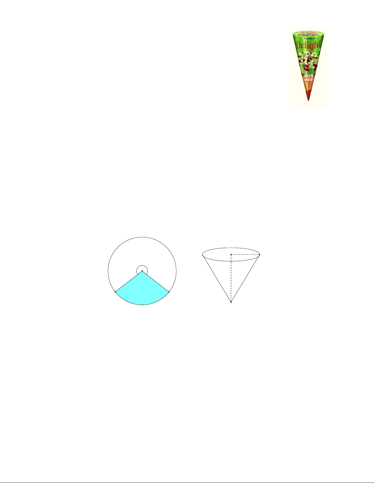 1) Một que kem ốc quế có dạng hình nón với đường kính đáy là 5cm và chiều cao là 10 c .