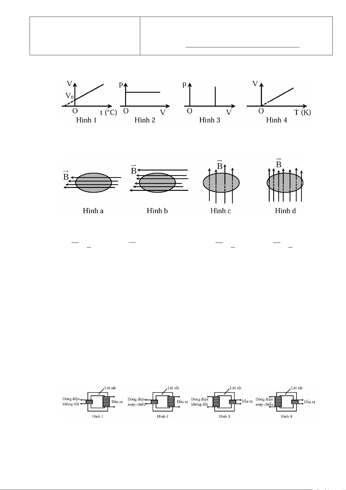 Câu 1: Đồ thị nào sau đây không mô tả quá trình đẳng áp? A. Hình 4. B. Hình 1. C. Hình 2. D. Hình 3.