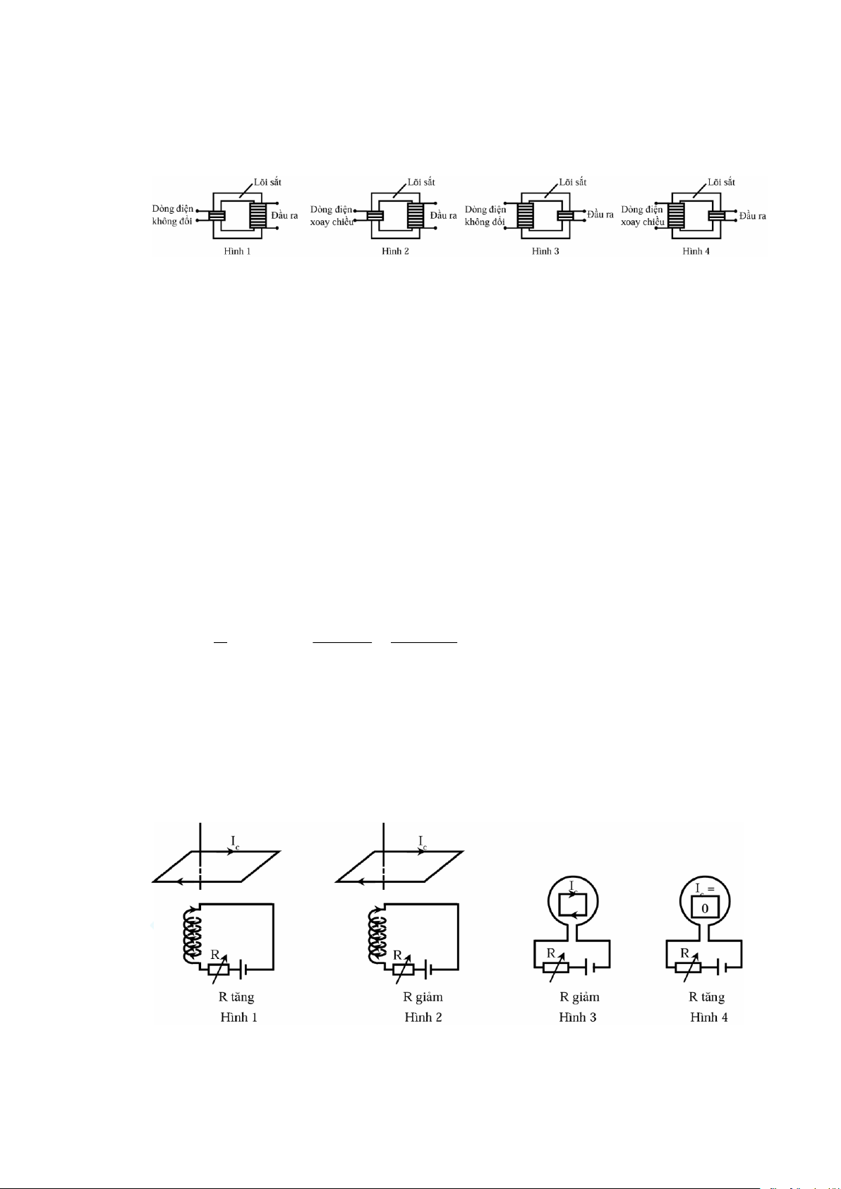 Câu 10: Sơ đồ máy biến áp ở hình vẽ nào dưới đây cho biết điện áp đầu ra lớn hơn điện áp đầu vào? A. Hình 2. B. Hình 4. C. Hình 1. D. Hình 3.