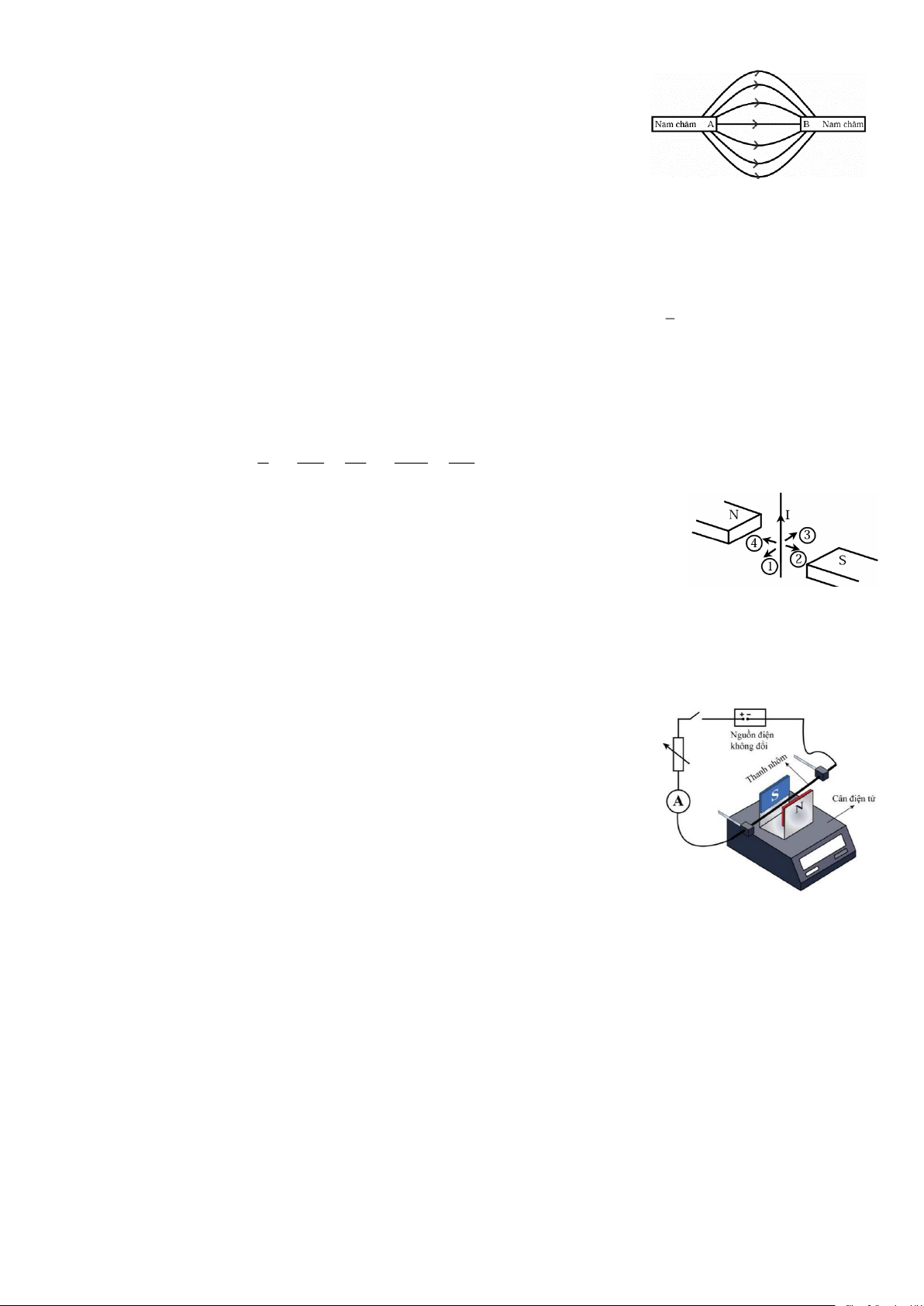 Câu 16: Hình dưới đây cho thấy các đường sức từ trường giữa hai cực từ ( A) và ( B ) Nhận định nào