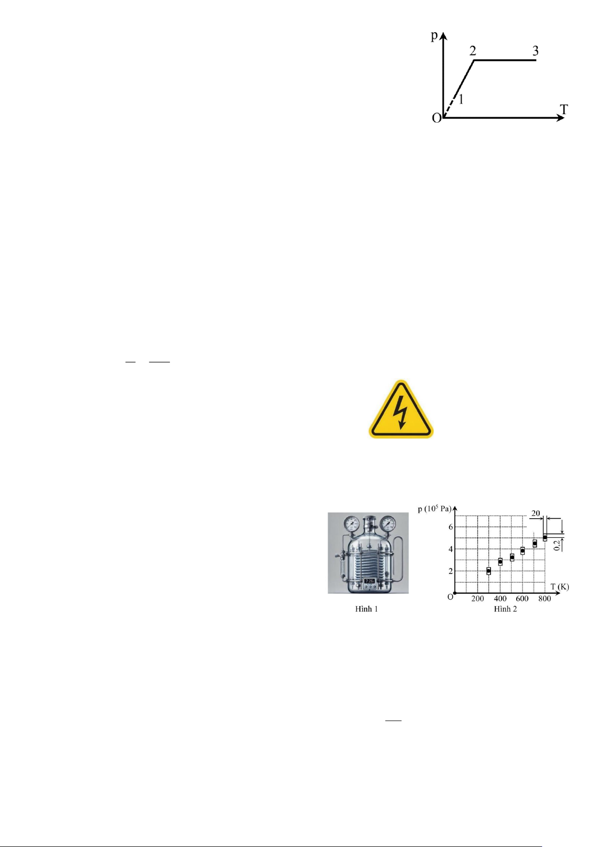 ứng. Từ số liệu ghi được, nhóm học sinh vẽ đồ thị mô tả sự phụ thuộc của áp suất vào nhiệt độ Trang 2