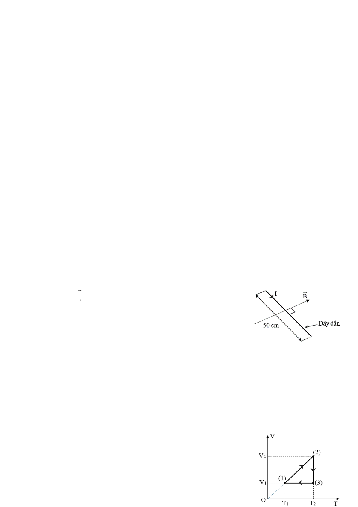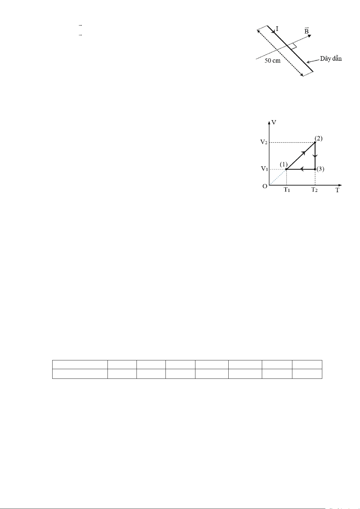 Câu 12: Một dây dẫn nằm ngang dài 50 cm mang dòng điện cường độ 3, 0 A đặt vuông góc với vectơ cảm