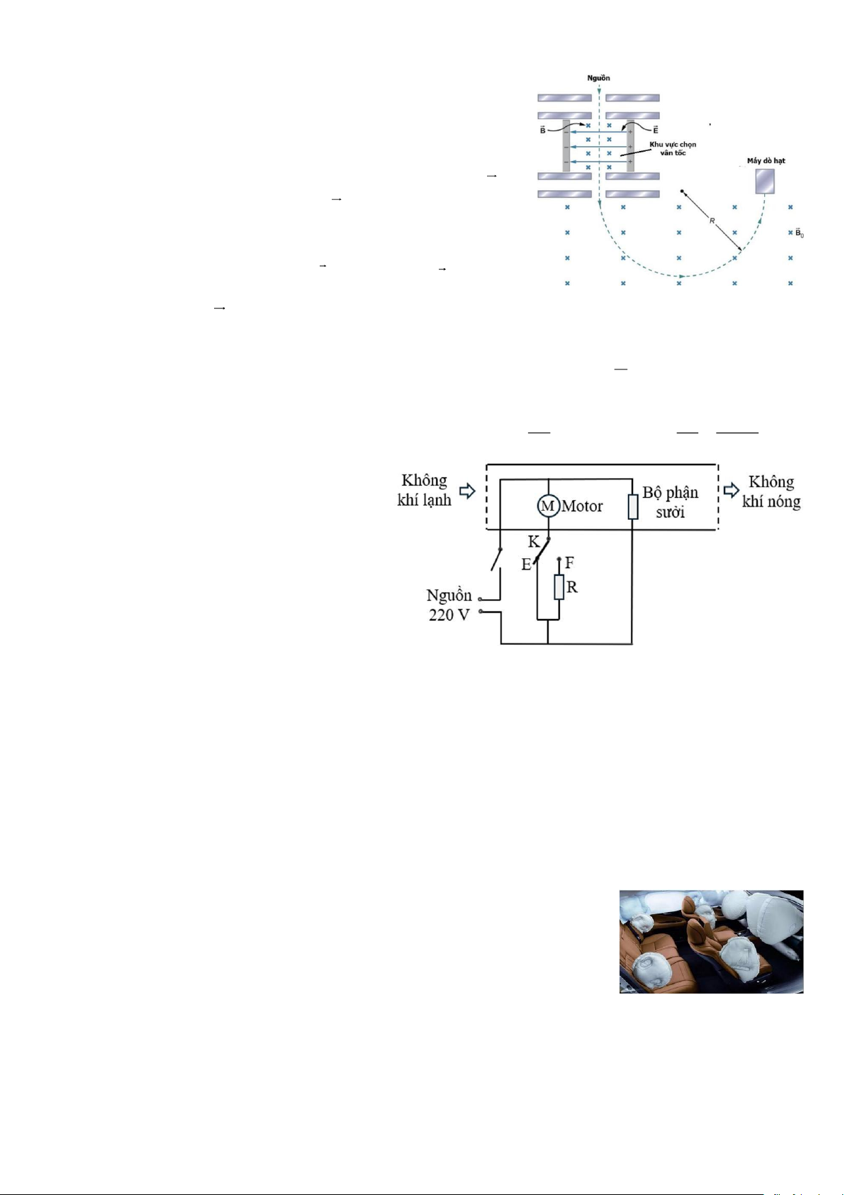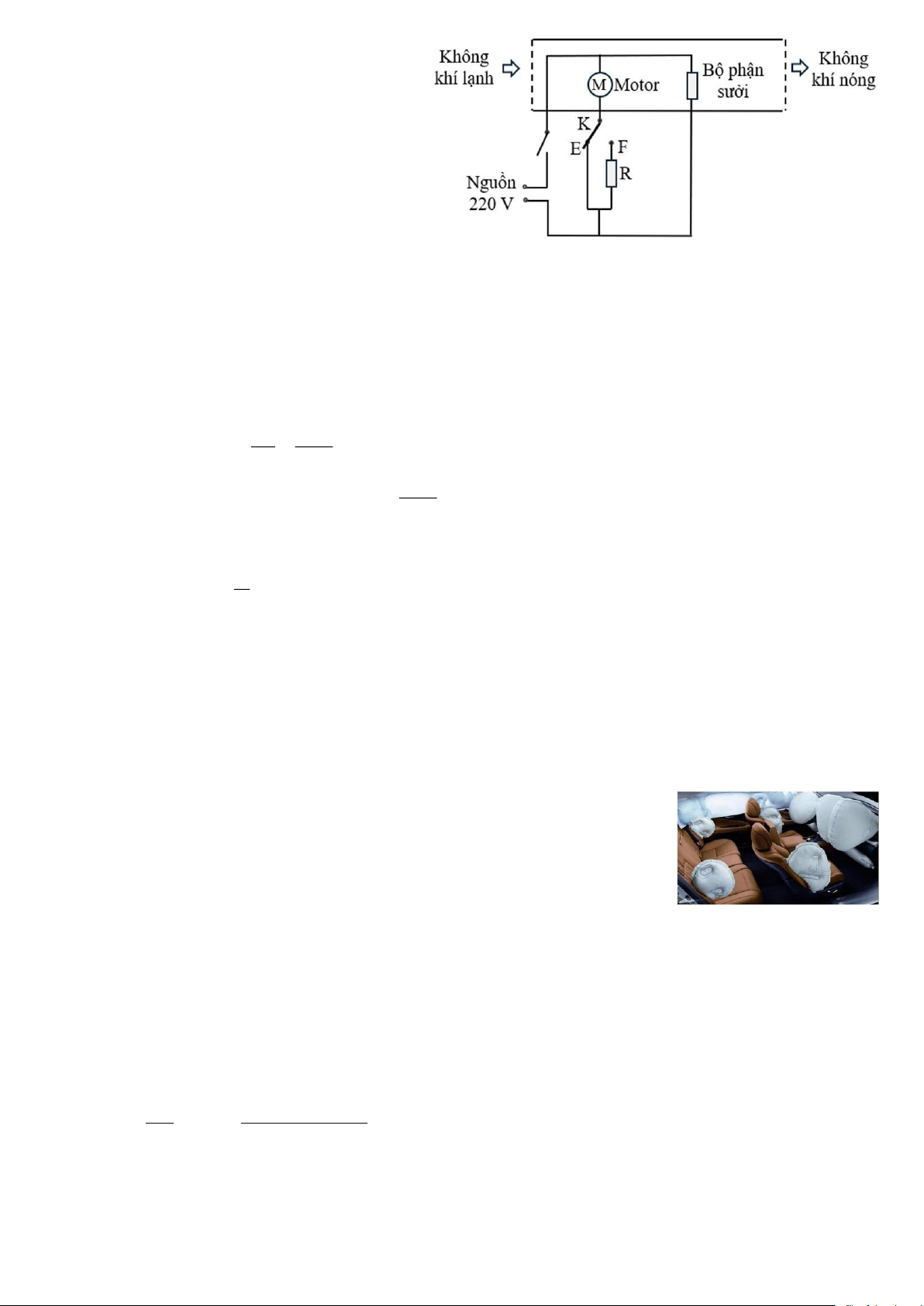 d) Khi chuyển công tắc K sang tiếp điểm F , nhiệt độ không khí nóng ở đầu ra sẽ giảm đi. Hướng dẫn 2 2 U 220 a) Sai. P = = 806,67 W suoi R 60 2 220