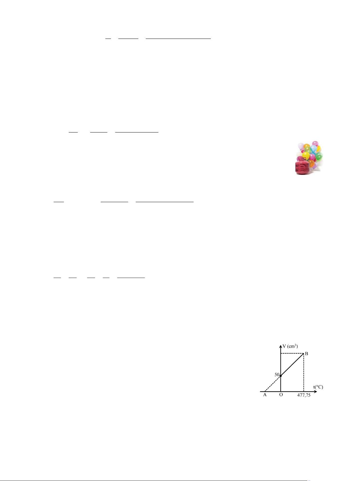 theo nhiệt độ như hình bên. Thể tích của khối khí ở trạng thái B là A. 3 150 cm . B. 3 137,5 cm . C. 3 187,5 cm . D. 3 87,5 cm . Hướng dẫn