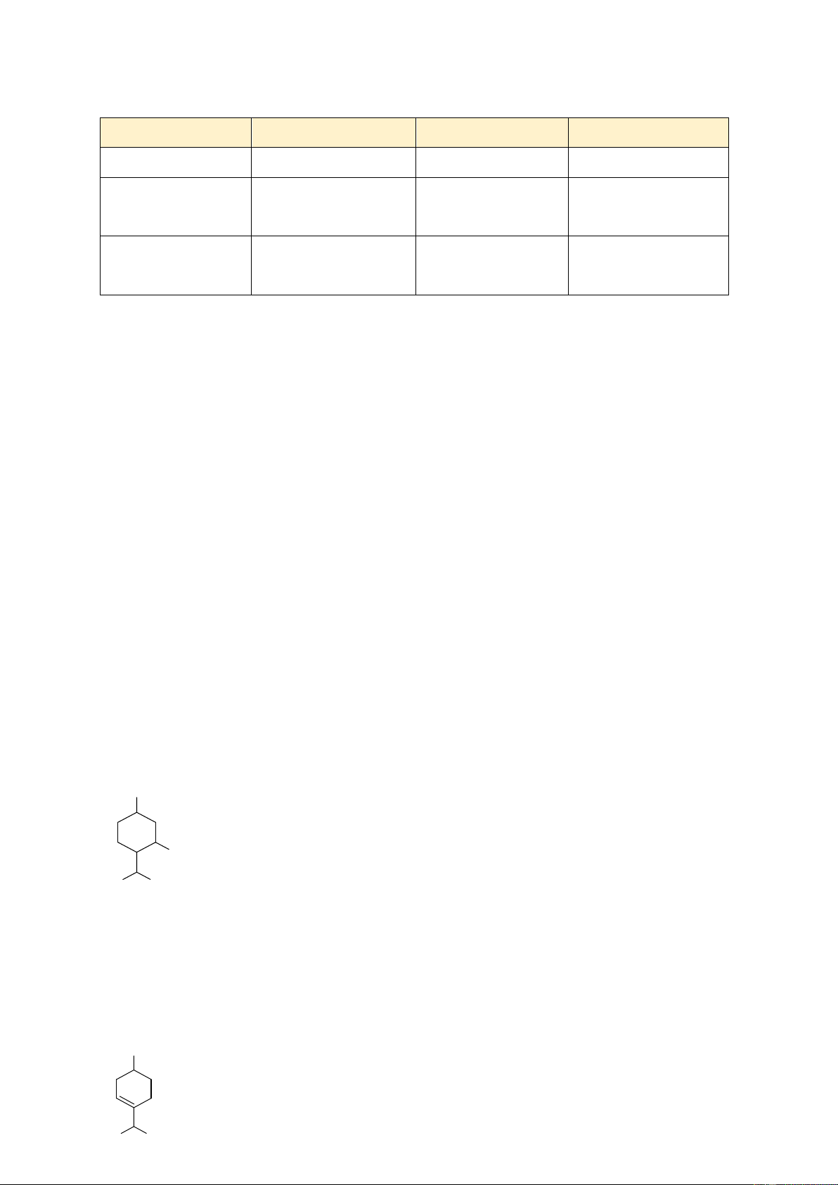 d) Khi tách nước menthol (đun với H2SO4 đặc ở nhiệt độ thích hợp), có thể thu được hydrocarbon có công thức bên dưới: CH3 H C 3 CH3 Câu 4: