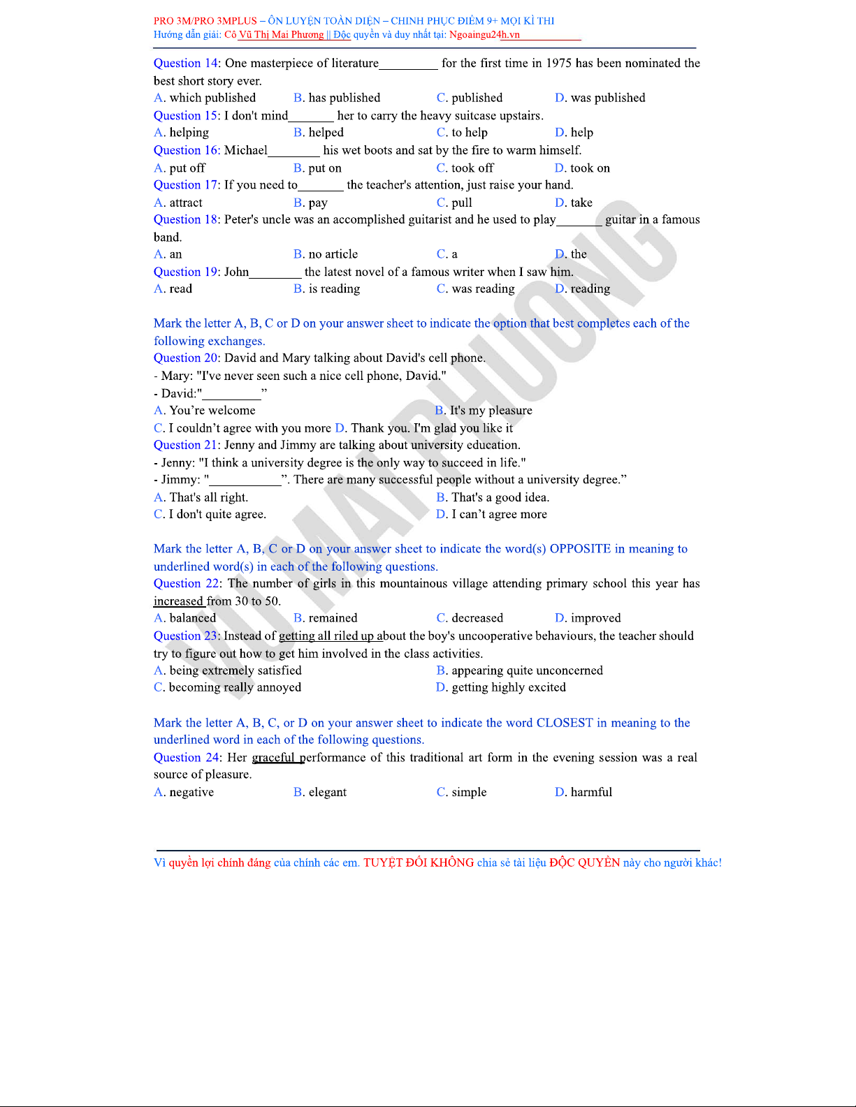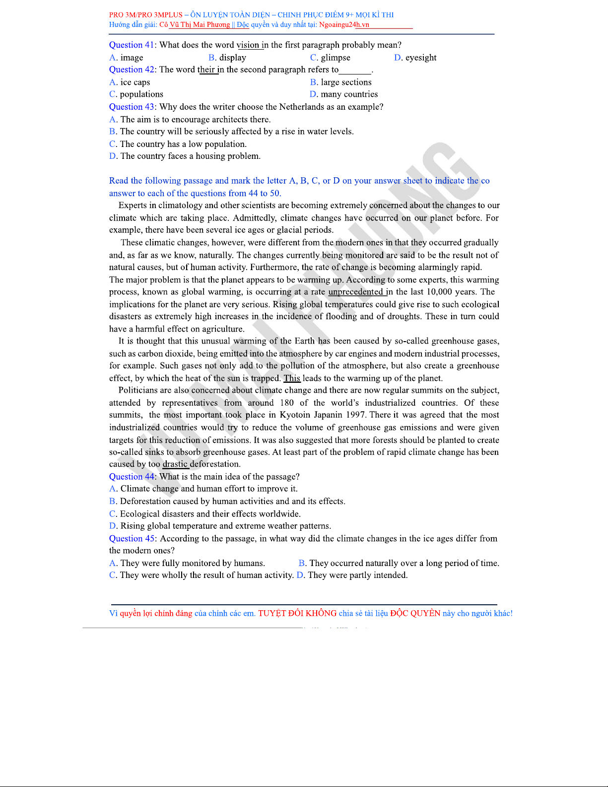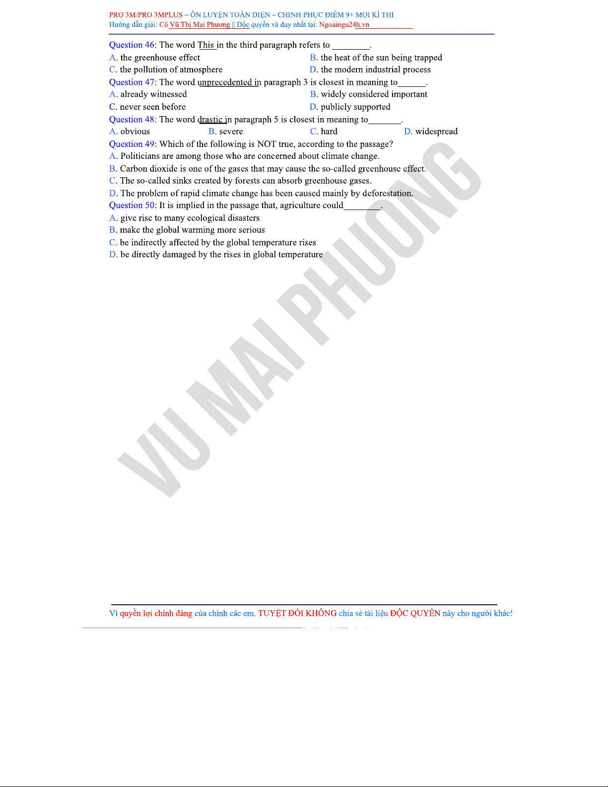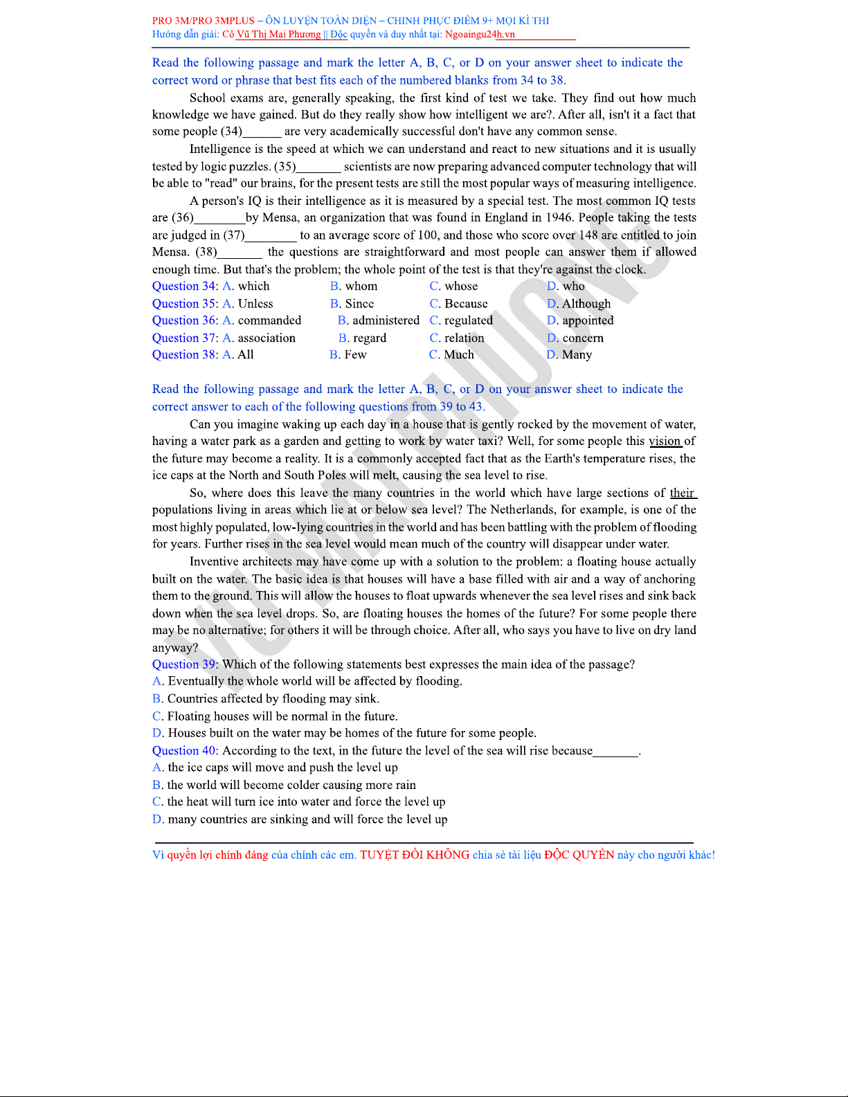 Đề thi thử tốt nghiệp THPT 2023 - Môn Tiếng Anh - Cô Vũ Mai Phương