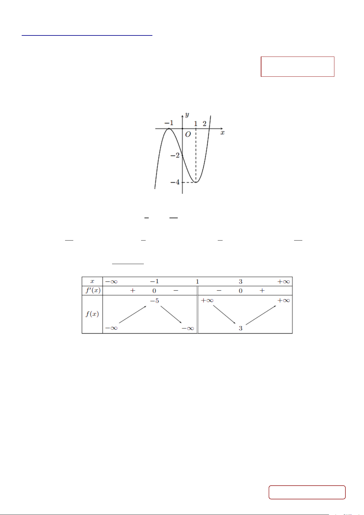 có bảng biến thiên như sau: x −1