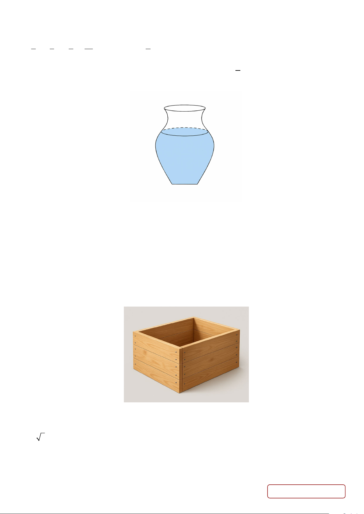 Câu 5. Một doanh nghiệp vận tải muốn đóng các thùng gỗ để chứa hàng hóa trong quá trình vận chuyển. Mỗi
