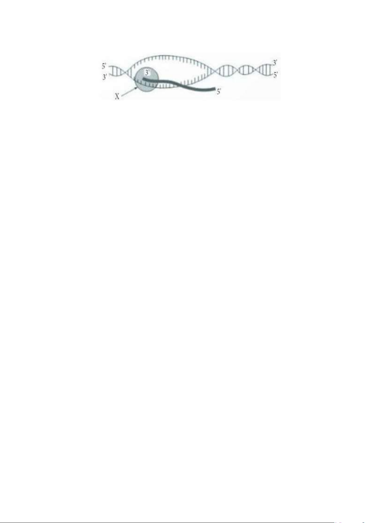Câu 12. Hình vẽ dưới đây mô tả một cơ chế di truyền cấp độ phân tử đang diễn ra. Cấu trúc X trên hình vẽ là A. DNA ligase. B. Ribosome.