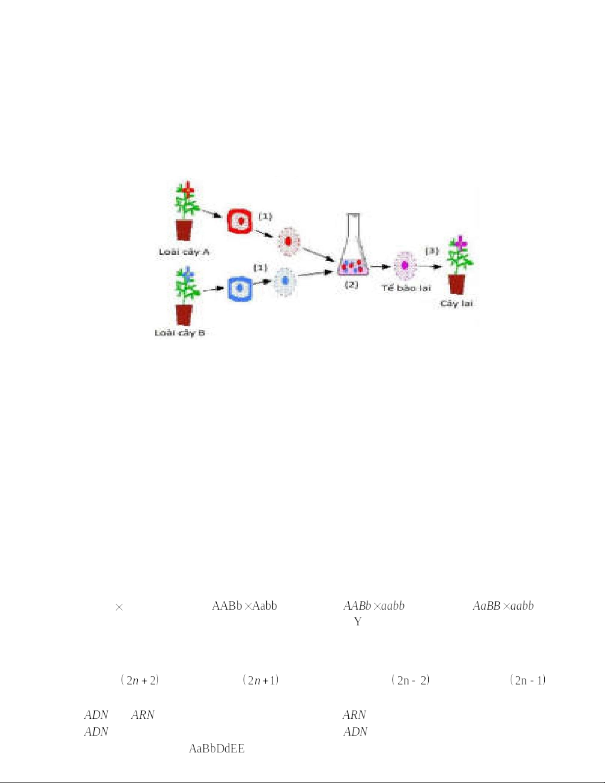 (1) Lai xa kèm đa bội hóa, dung hợp tế bào trần khác loài có thể tạo thể song nhị bội.