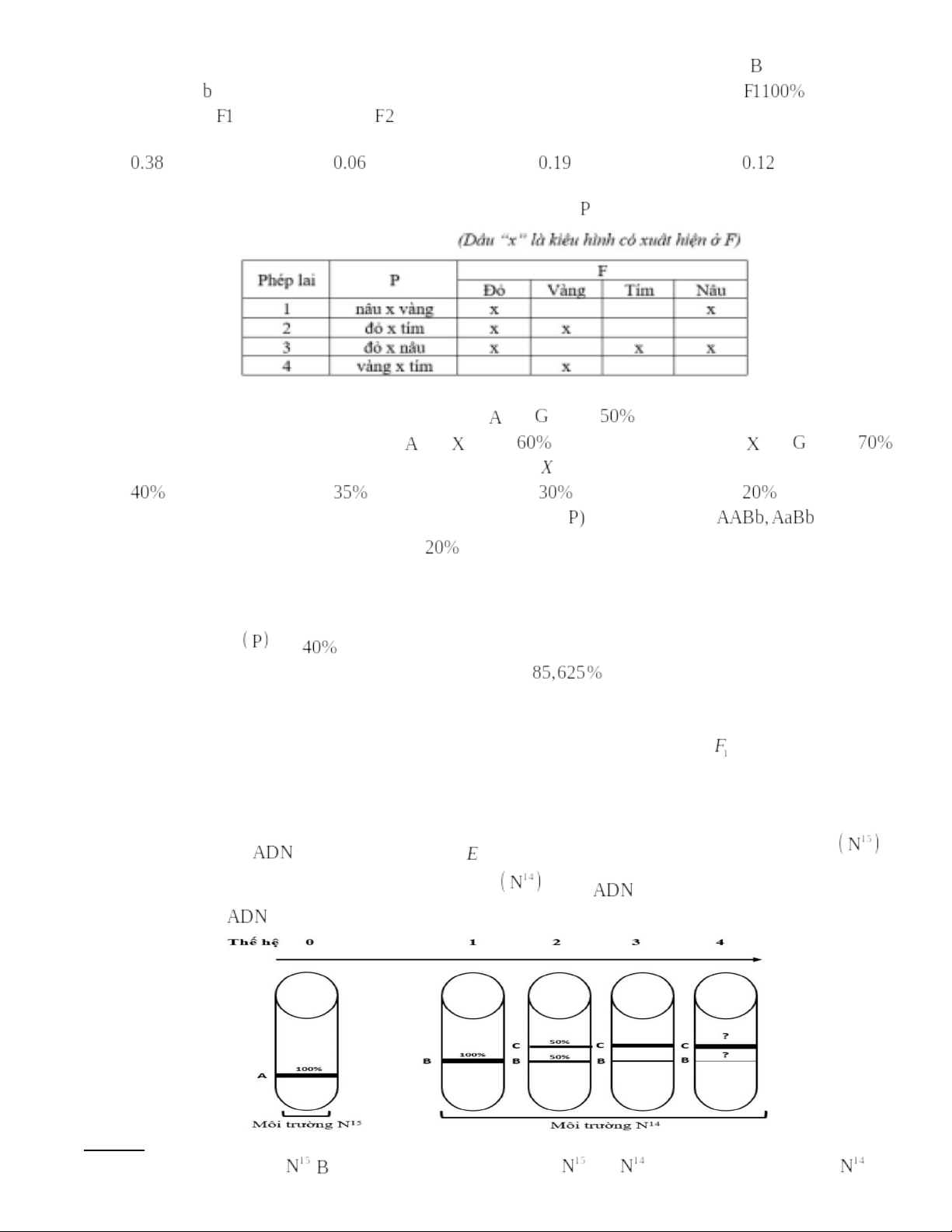 Câu 120. Một nhóm các nhà khoa học thực hiện lại thí nghiệm của Meselson và Stahl (1958) để nghiên cứu mô hình nhân đôi của . Họ đã nuôi vi khuẩn