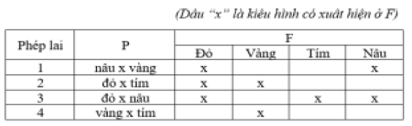 có kiểu hình khác nhau, mỗi phép lai đều thu được đời con có 4 loại kiểu hình và có