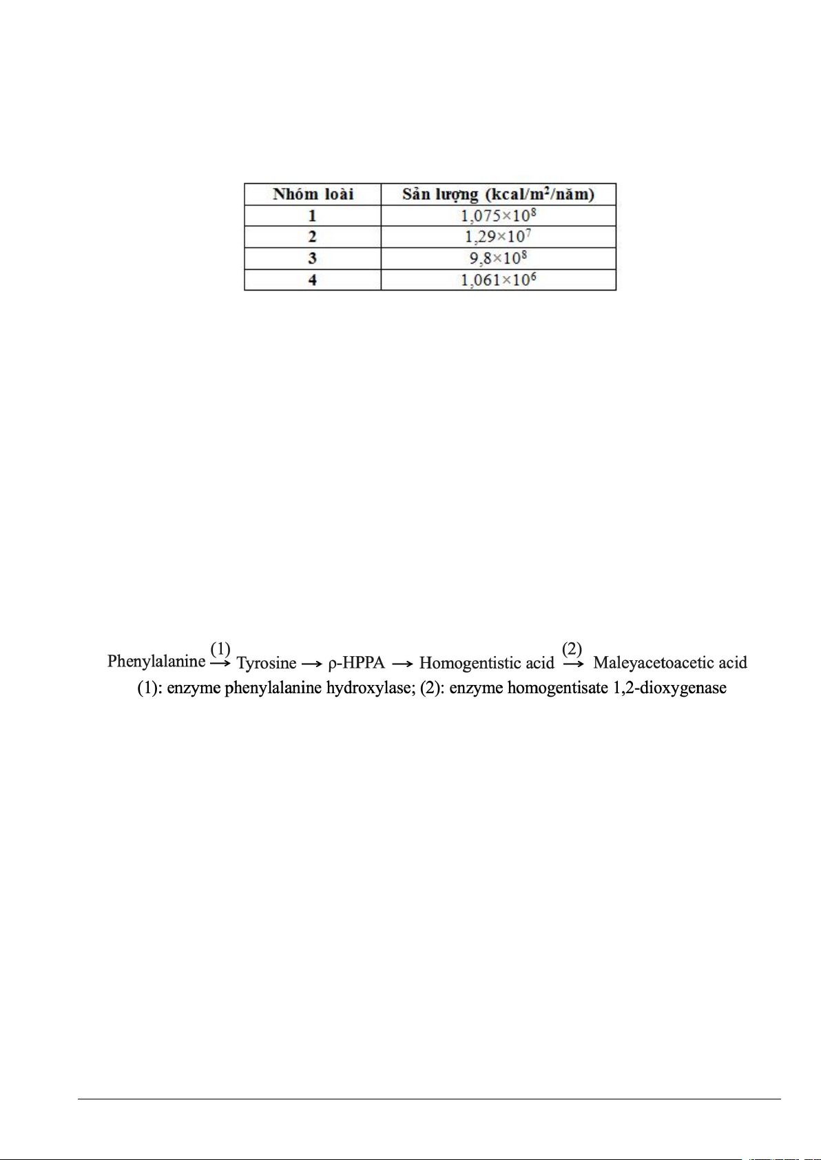 Câu 3. Khi khảo sát ở một hệ sinh thái, người ta xác định được sản lượng của 4 nhóm loài thuộc 4 bậc