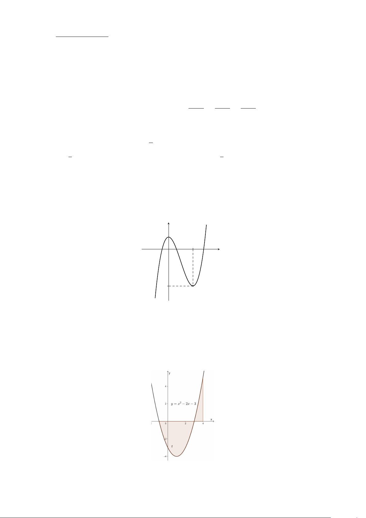 Câu 6. Cho hình phẳng (H) được giới hạn bởi các đường y = x2 − 2x − 3, y = 0, x = −1, x = 4 (như hình minh họa).