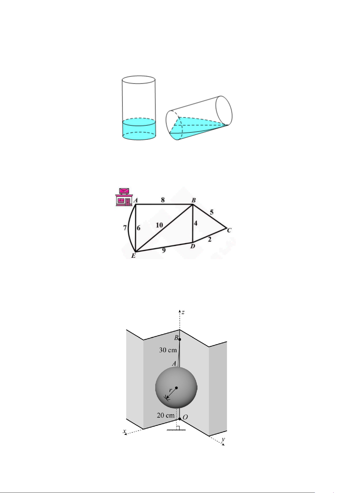 Câu 4. Có một cốc thủy tinh hình trụ, bán kính trong lòng đáy cốc là 6 cm, chiều cao trong lòng cốc là