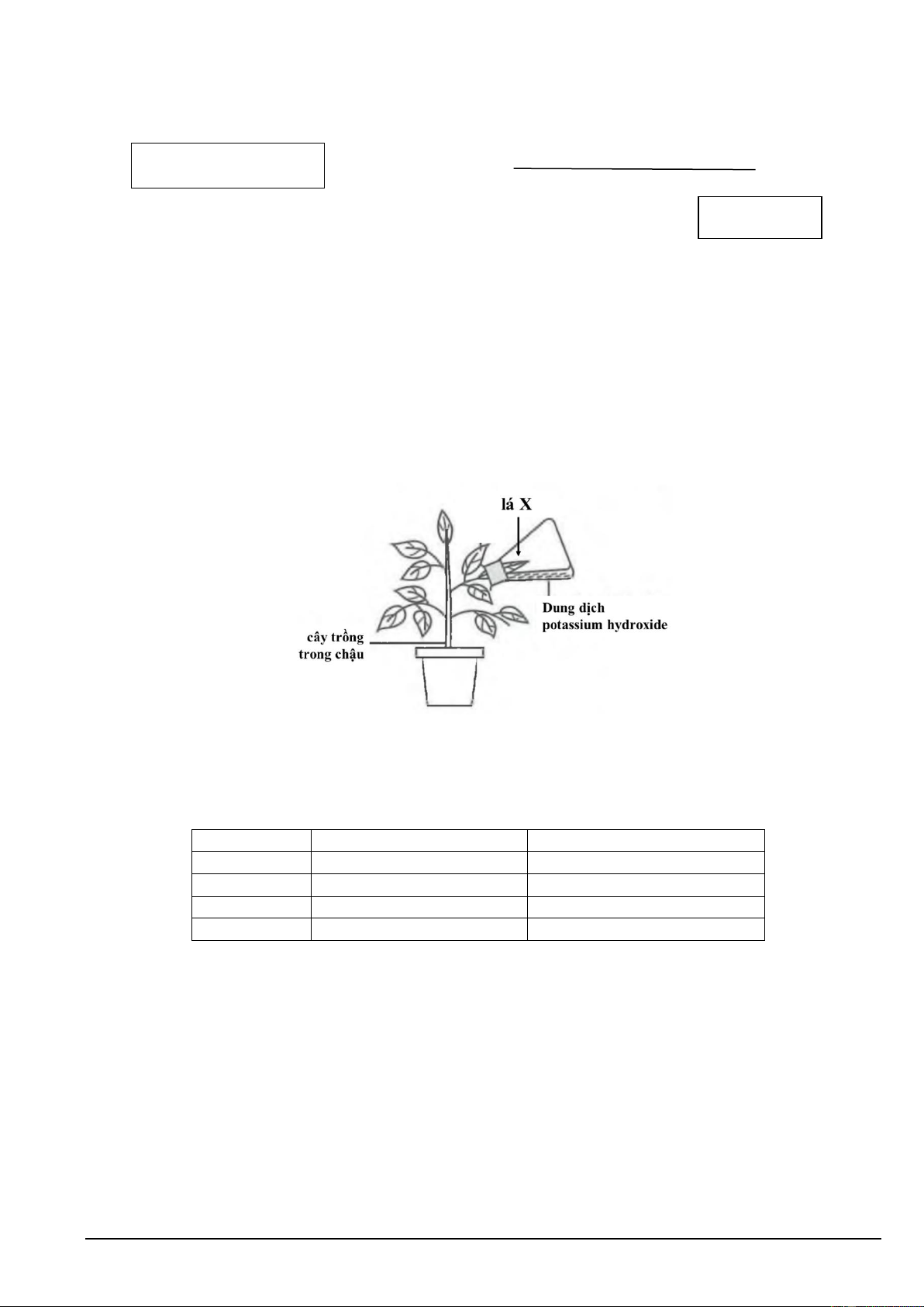Trong thí nghiệm Hình 1, lá X được đặt trong một bình có chứa dung dịch Potassium hydroxide - (KOH)