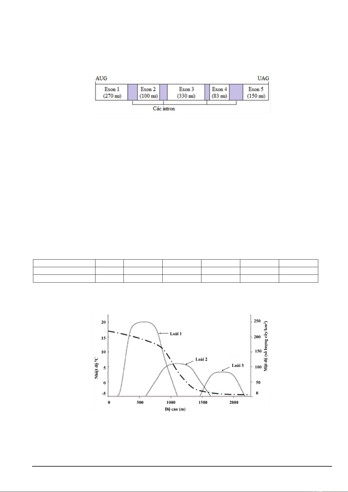 Câu 6. Biểu đồ hình 6 thể hiện sự phân bố mật độ cá thể của ba loài thực vật khác nhau theo độ cao tại một