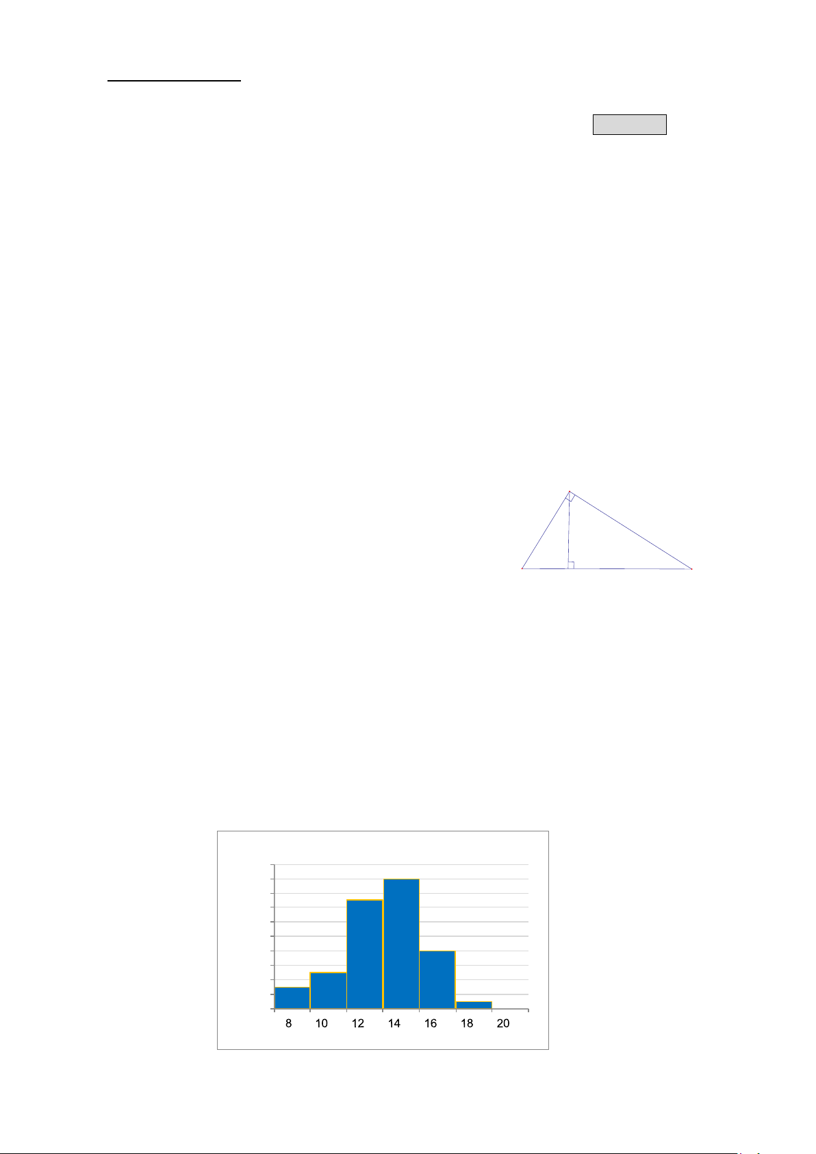 Câu 8. Trong một kỳ thi học sinh giỏi Toán (thang điểm 20) của 50 học sinh, kết quả được cho bởi biểu đồ sau: