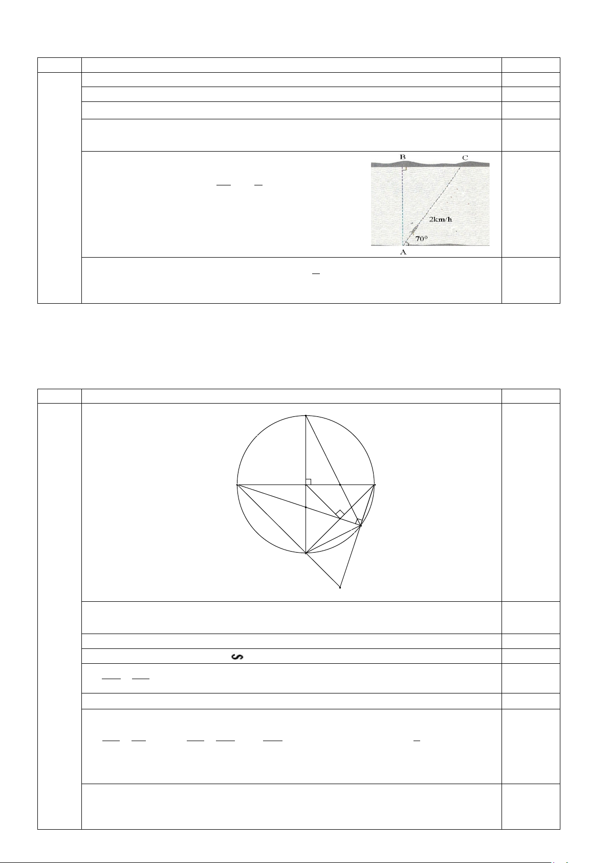 đường đi của thuyền tạo với bờ sông một góc 700 (hình bên). Tính chiều rộng của khúc sông? Bài Nội dung Điểm 2