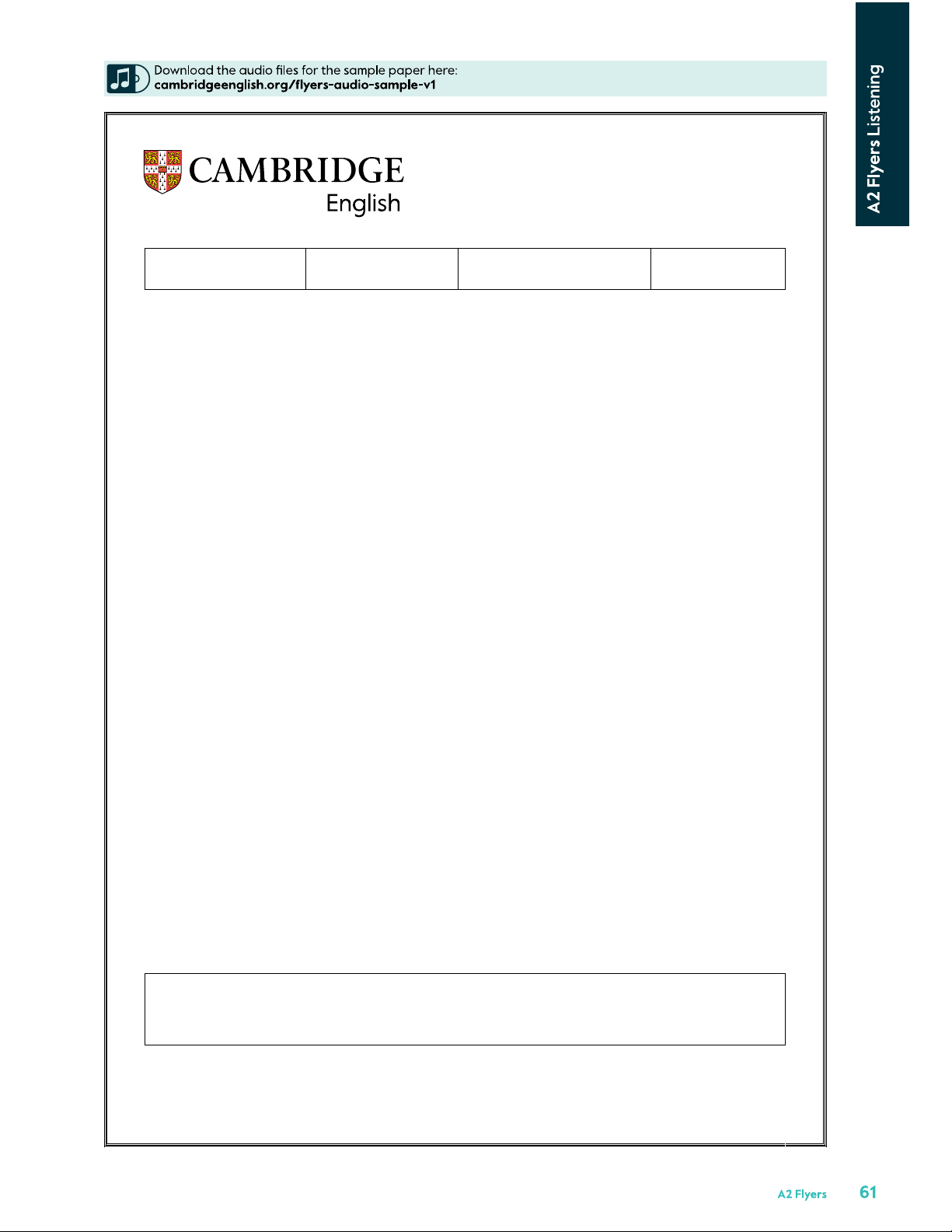 Centre Number Candidate Number A2 Flyers Listening There are 25 questions. You have 20 minutes.