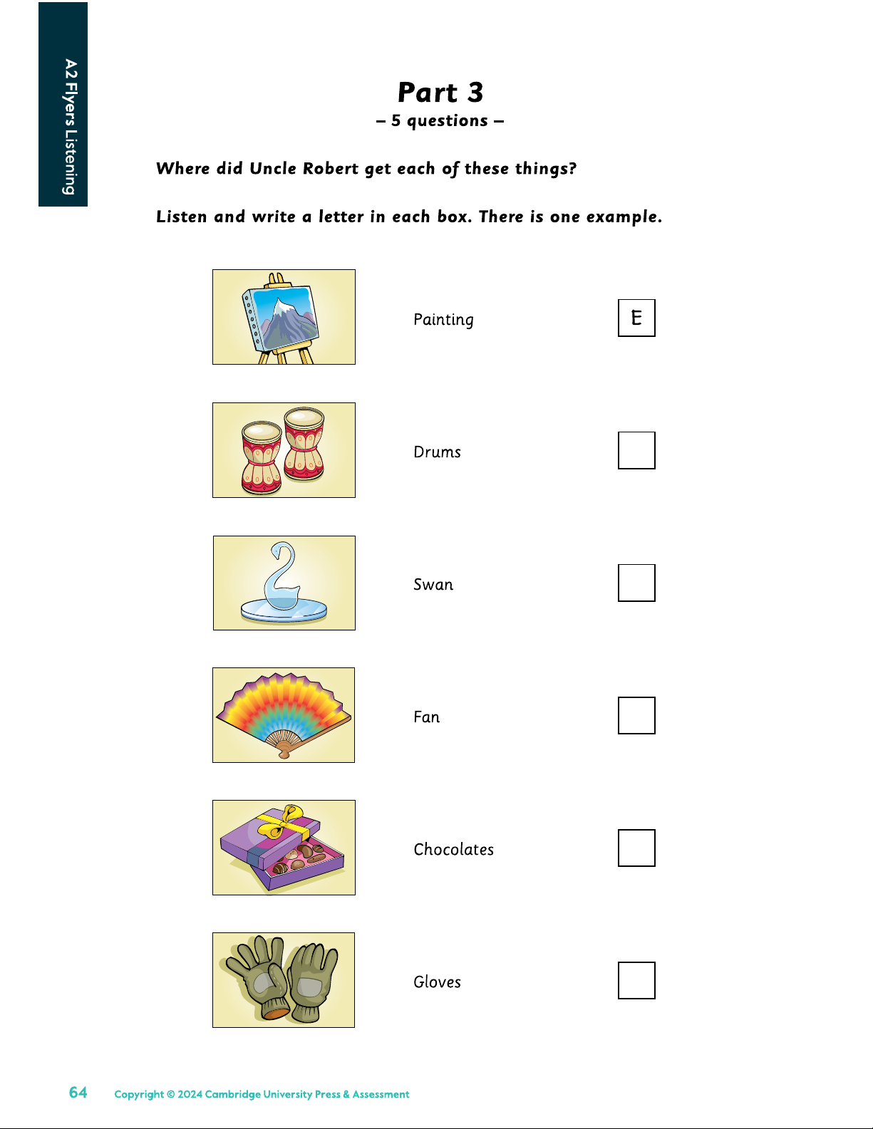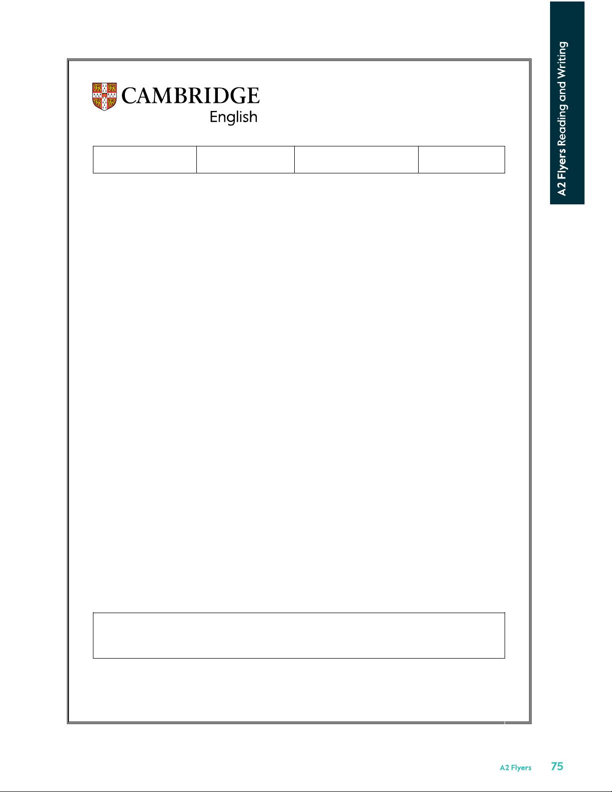 Copyright © 2024 Cambridge University Press & Assessment ✓ ✓ Centre Number Candidate Number A2 Flyers Reading and Writing There are 44 questions. You have 40 minutes.